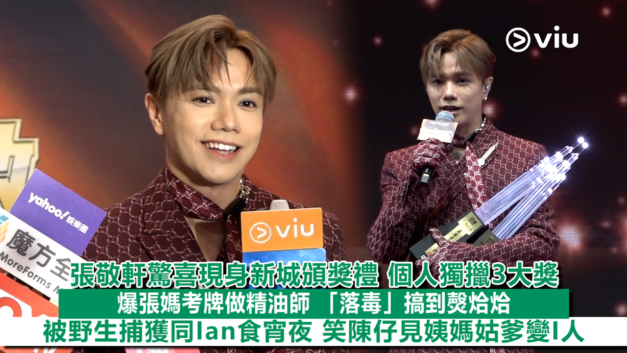 足本訪問: 張敬軒驚喜現身新城頒獎禮 個人獨擸3大獎 爆張媽考牌做精油師 「落毒」搞到㷫烚烚 被野生捕獲同Ian食宵夜 笑陳仔見姨媽姑爹變I人