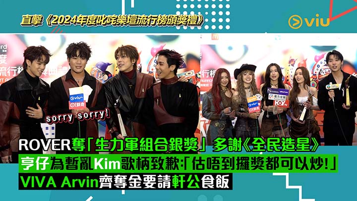 【Viu】向來趣怪嘅ROVER今晚於商台《2024年度叱咤樂壇流行榜頒獎禮》奪「生力軍組合銀獎」後受訪,即變亨仔「道歉大會」,事關佢喺台上「暫亂歌柄」,搞到Kim唔夠時間多謝Edward團隊,仲講到眼濕濕,唯有應承請食貴價壽司補數啦!ROVER仔坦言最開心係同一班《造星V》兄弟齊齊拎獎,所以要特別多謝《全民造星》!