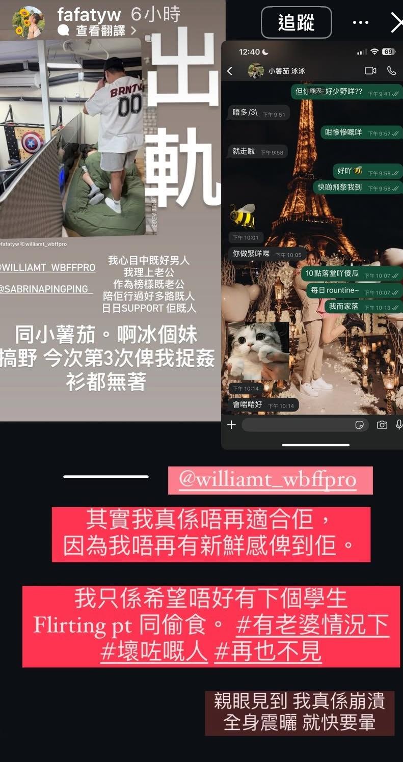 FaFa Tse老公William是網紅健身教練,兩人結婚三個月,男方的IG帳號已轉為私人。