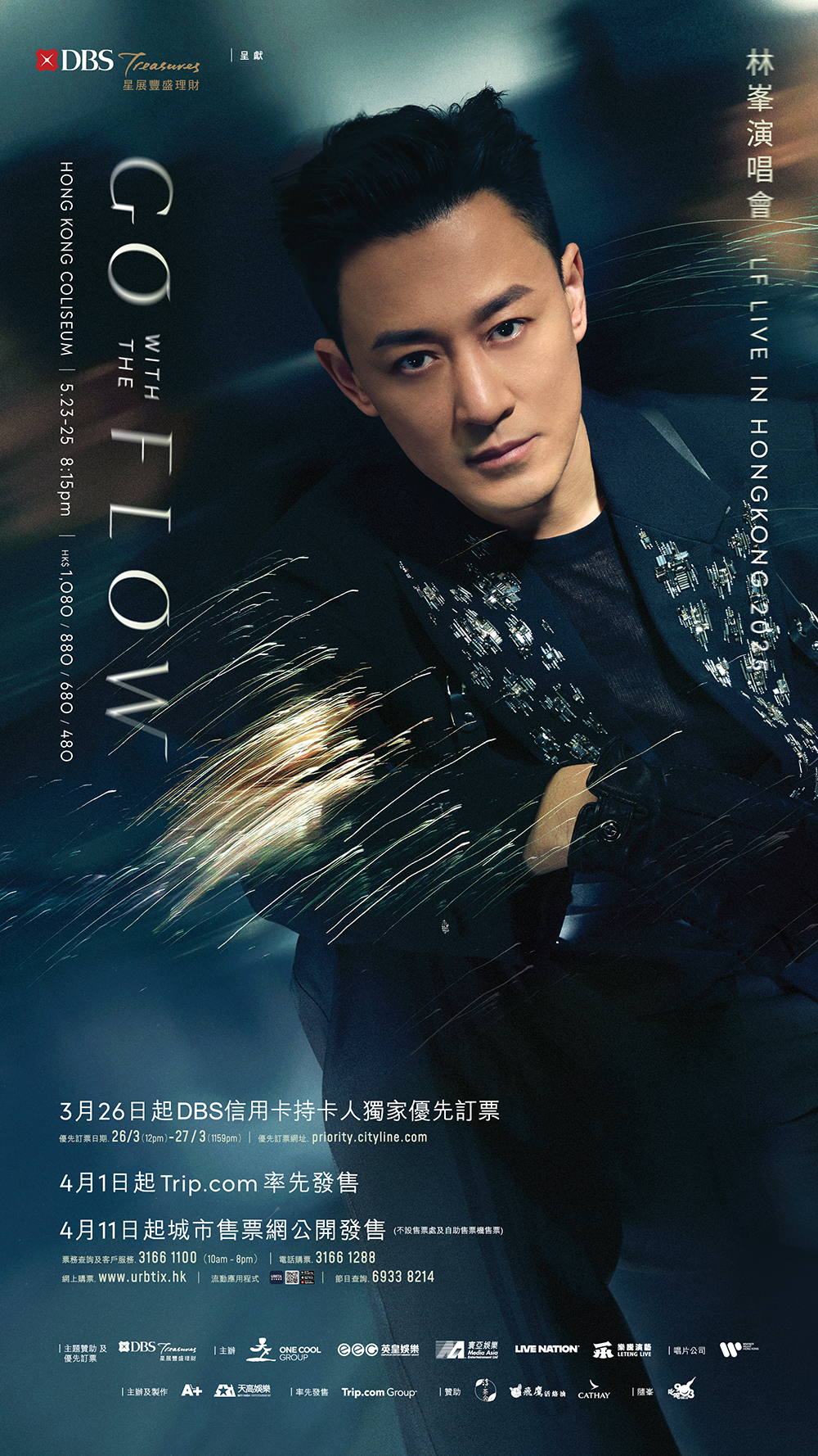 林峯睽違9年再次踏上紅館舞台,將在5月23-25日舉行一連三場個人演唱會,門票將於3月26日(三)起DBS信用卡獨家優先訂票,4月1日(二)Trip.com獨家套票率先發售,4月11日(五)起在城市售票網公開發售。