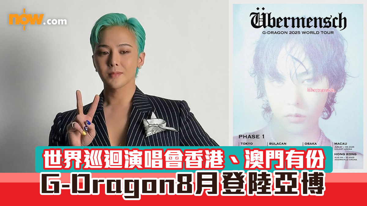 【Now.com】各位V.I.P.等到啦!K-pop天王G-Dragon(權志龍)早前宣布將於今年展開世界巡迴演唱會,令一眾V.I.P.(BIGBANG粉絲名稱)期待不已。今日(19日),官方在社交平台公布「G-DRAGON 2025 WORLD TOUR【Übermensch】」第一階段的巡演資訊,其中GD 8月將強勢登陸香港亞洲國際博覽館ARENA演出!澳門亦有份!即睇各站詳情!