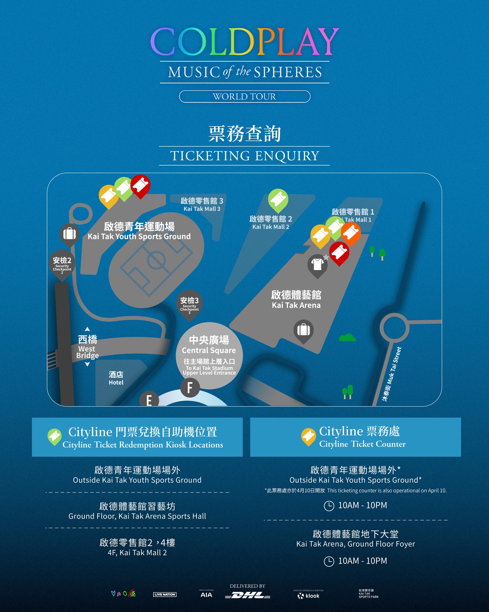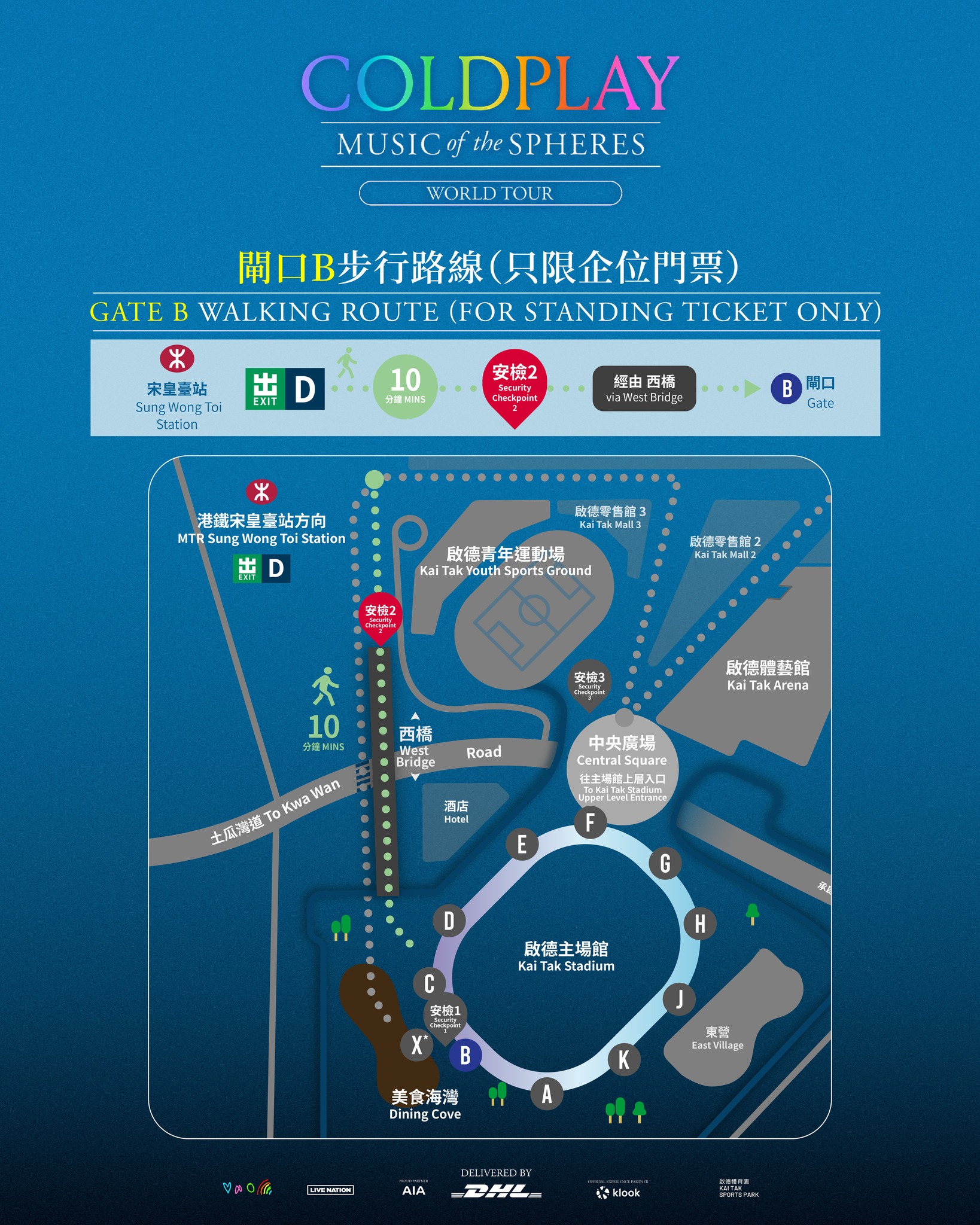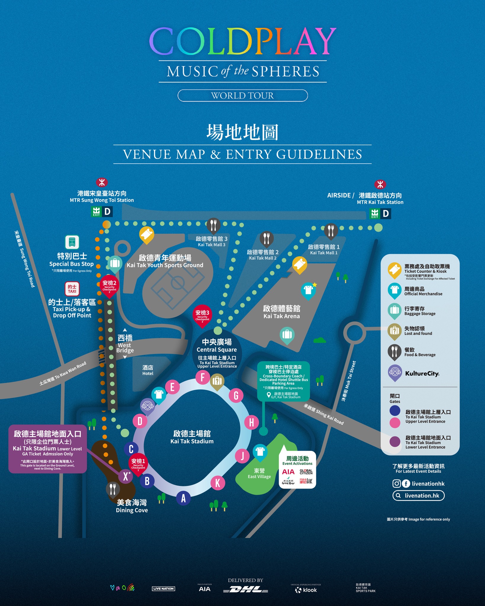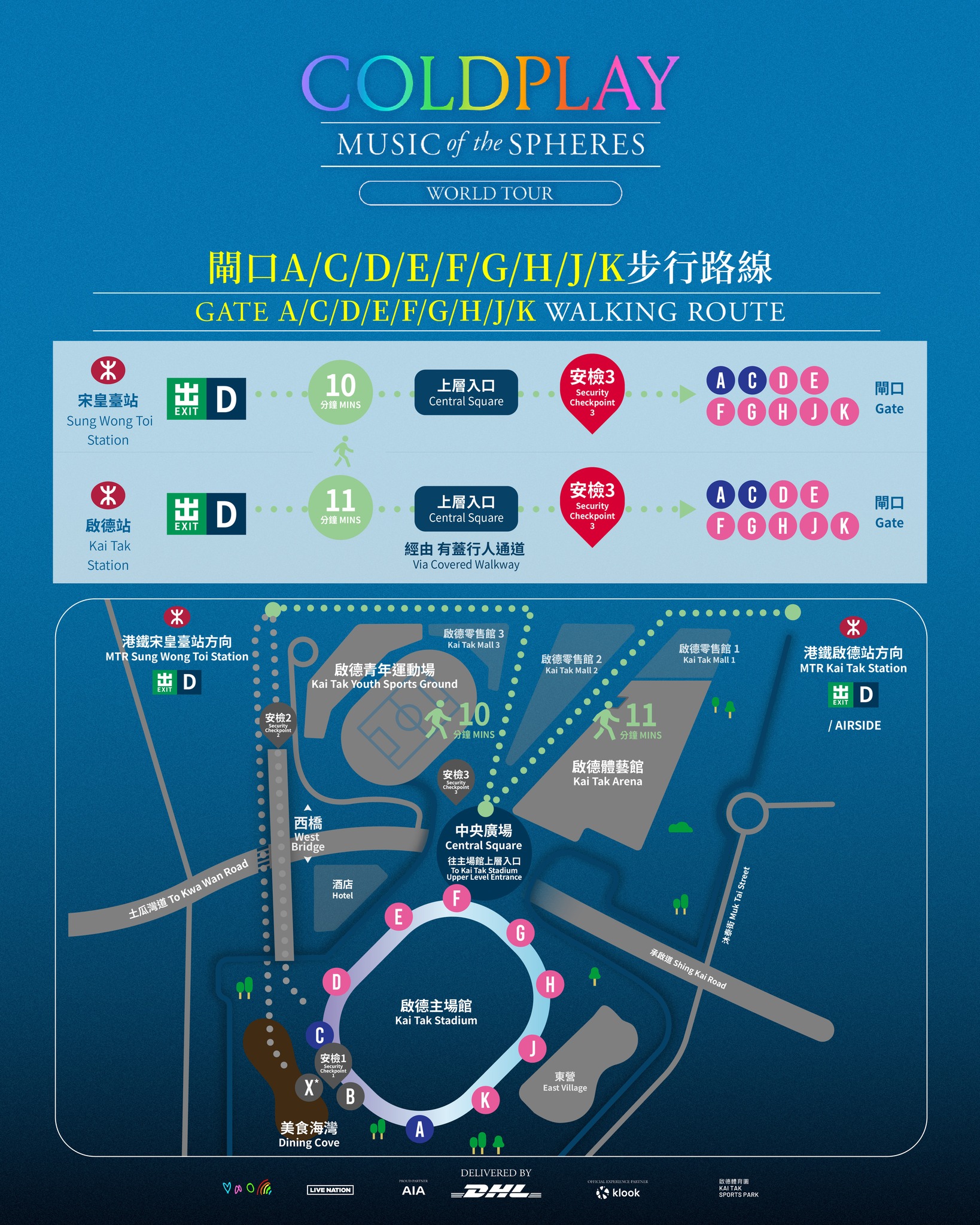 安檢位置共有3個,分別鄰近港鐵宋皇臺站、美食港灣和啟德主場館中央廣場,主辦單位建議大家預留足夠的時間進行安檢。