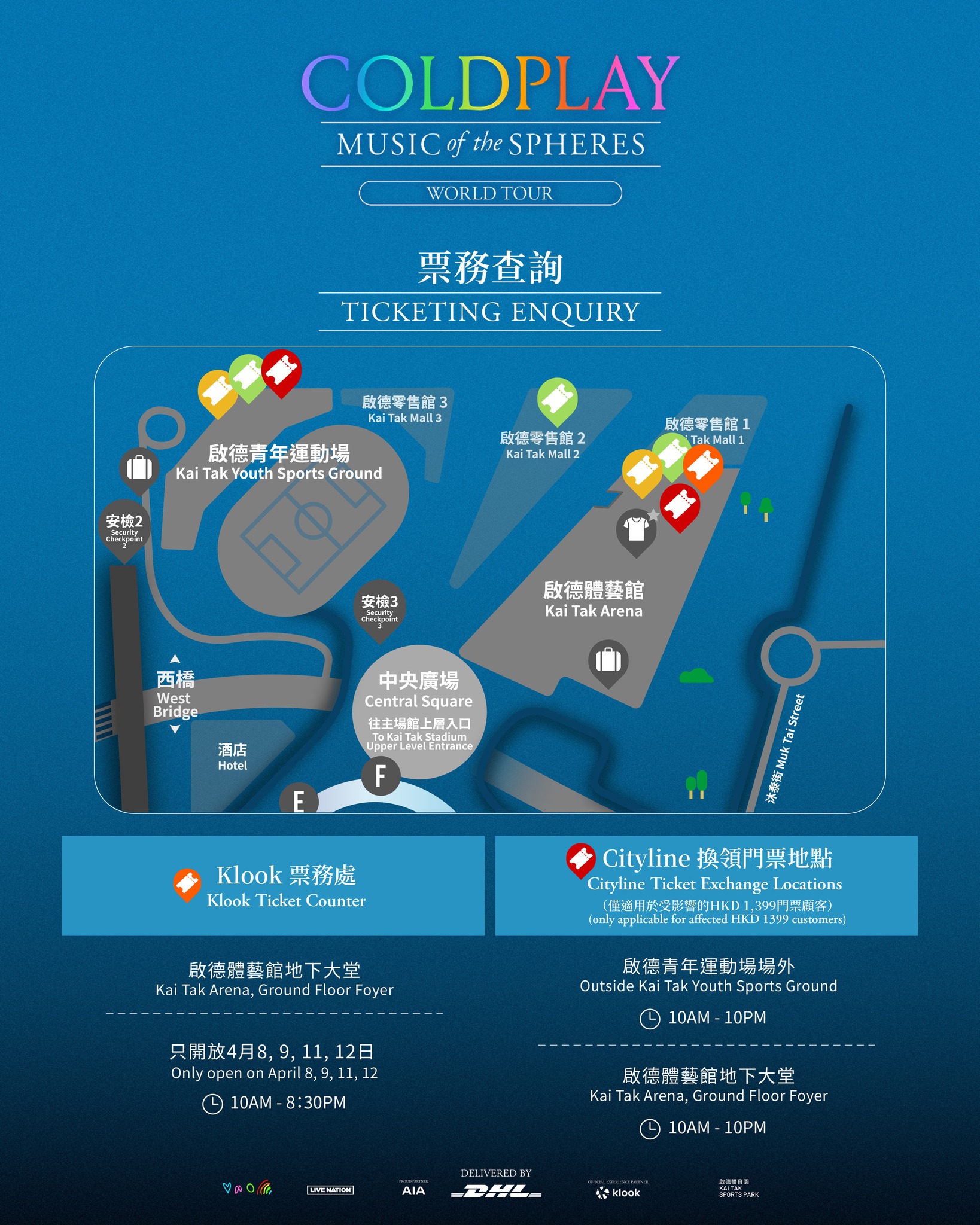 至於受早前出錯票影響的HKD 1,399門票顧客,可於以下地點換票: