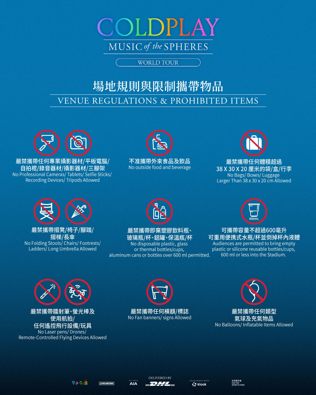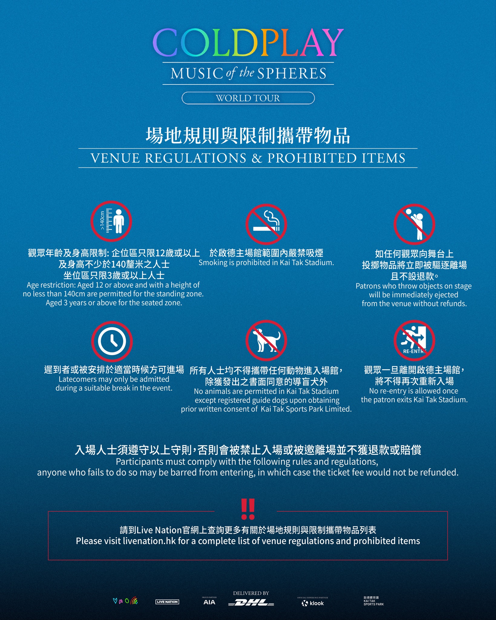 Coldplay演唱會|入場及場地限制