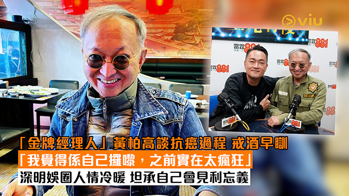 【Viu】現年74歲、有金牌經理人之稱嘅Paco黃柏高,最近接受商台《星光背後》主持梁泰來訪問,講到抗癌10個月嘅歷程,佢坦承喺2019年7月發現病徵:「嗰時好惡劣,咳得好緊要,痰又帶血。以前我飲酒,一個星期飲醉八晚,成日以為醒唔到,到發覺出現問題,先發覺真係會死。當時驚㗎!我諗住玩完,但都要接受。我覺得係自己攞嚟,之前實在太瘋狂。」
