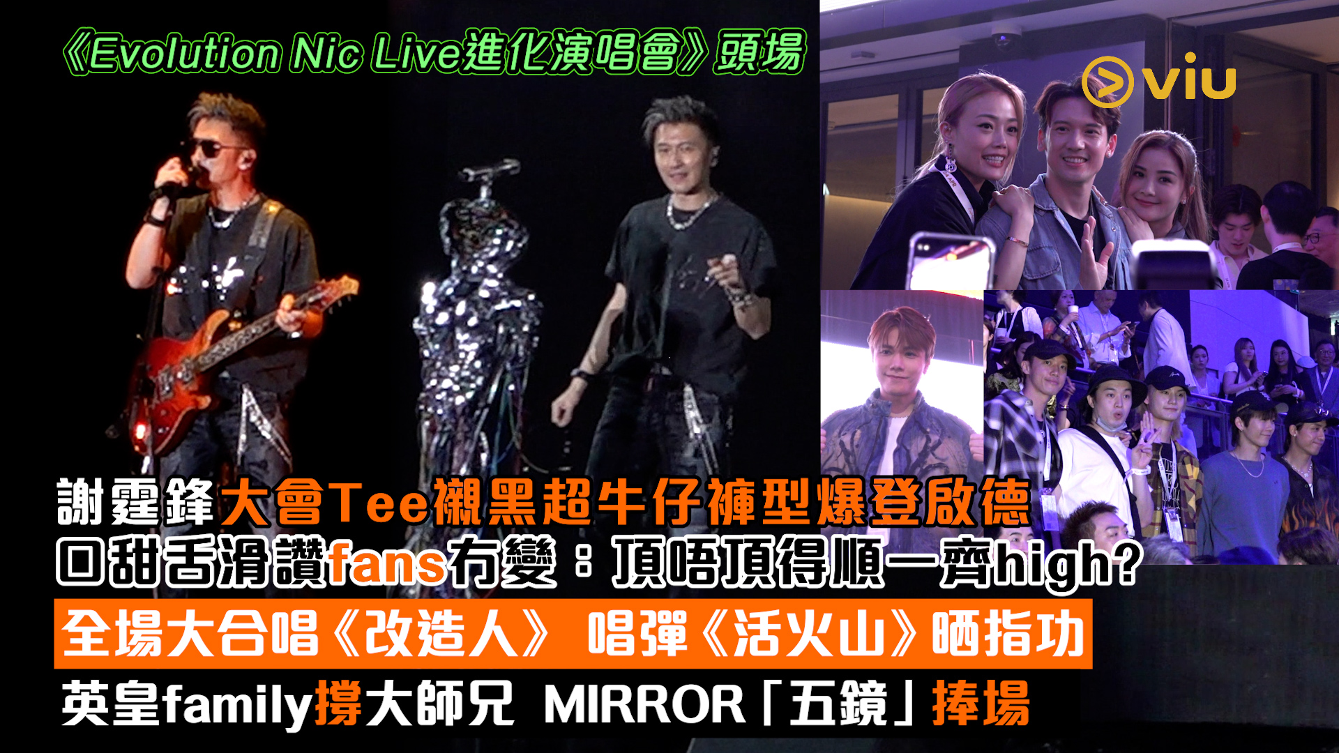 【Viu】謝霆鋒一連四場《Evolution Nic Live進化演唱會》今晚起強勢登陸啟德主場館,作為香港首位喺啟德主場館開騷嘅歌手,同4萬3千fans同歡!首場大約喺夜晚7點55分開始,戴住黑超嘅霆鋒喺台中chok爆登場,歌衫走casual路線,演唱會Tee配牛仔褲!霆鋒打頭陣就唱《不要說謊》,唱到《改造人》仲嚟個全場大合唱!
