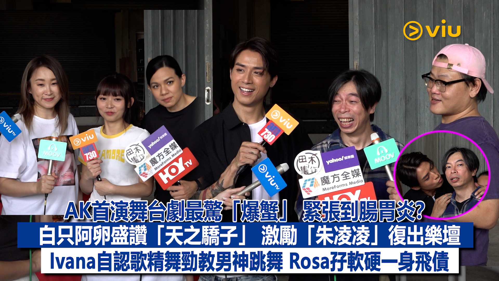 【Viu】由Ivana王菀之、AK、Rosa韋羅莎、白只、「阿卵」楊偉倫同童童蔡曉童主演嘅舞台劇《SUCK樂園》今晚開鑼,一眾演員中午進行拜神儀式。首次演舞台劇嘅AK坦言心情緊張,最驚忍唔到笑!見佢對住阿卵呢啲搞笑高手,AK明顯都玩得好放,仲扮錫錫阿卵添,笑C!AK又透露上星期因為腸胃炎而瘦咗,陰功豬咯!而前輩阿卵同白只都激讚AK,仲封佢為「天之驕子」添,又笑言同MIRROR成員合作後,有意畀「朱凌凌」再出山,嘩,不如Crossover埋「夜粥小組」啦!