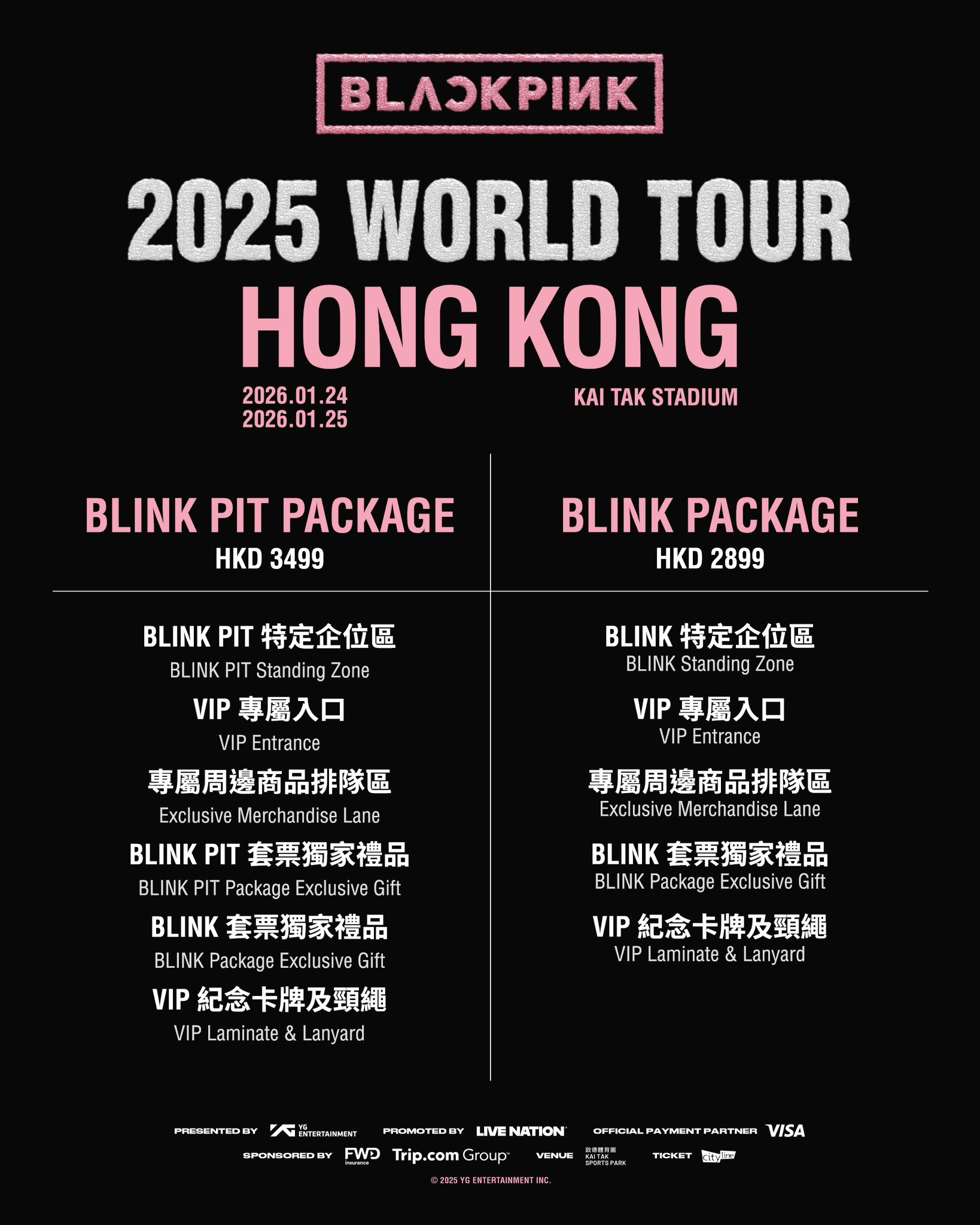 -企位:HKD $3,499 (BLINK PIT PACKAGE) / $2,899 (BLINK PACKAGE) / $1,899 (企位Standing)