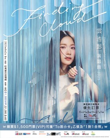 雲浩影首個個人演唱會《Finding Cloud 雲浩影演唱會2025》將於8月2日假旺角麥花臣場館舉行,門票分為港幣$1,500、$1,080和$680。購買$1,500 VIP門票的「迷雲黨」(Cloud歌迷暱稱)可獲專屬福利,包括「To簽小卡」(Cloud將親手寫上該位歌迷名字)以及「1對1合照」。東亞銀行信用卡於6月25日早上10時起優先預訂門票,「迷雲黨」記得較定鬧鐘準時搶飛!
