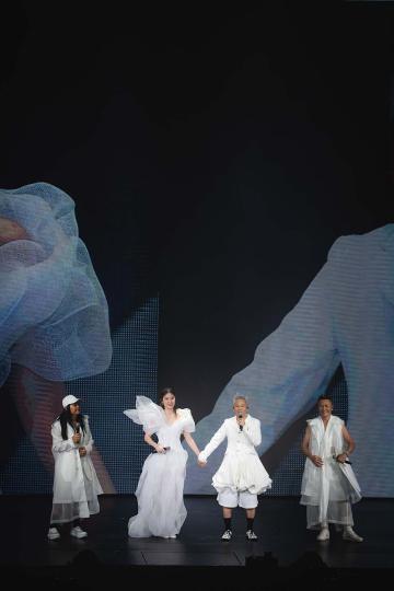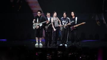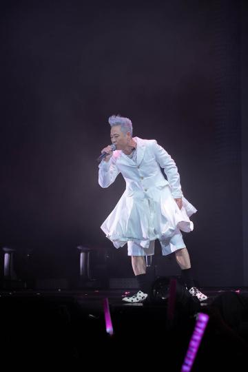 昨晚在Kelly與雷頌德、豹哥單立文、Joey Tang合唱《紀念日》的環節時,原主唱之一馮德倫驚喜現身,歌迷歡呼聲震撼紅館,不單是組合Dry重現舞台,更是《紀念日》三位主唱難得重聚的一次。雷頌德望着Kelly說:「證明呢個世界有平行時空,隔咗咁多年我同Stephen鬚都白埋,但中間嗰個依然冇變。」上一次《紀念日》齊腳是2013年,轉眼已相隔十二年。Stephen表示不知演唱會因颱風延期,並笑說:「我前晚係諗住問阿Mark出唔出嚟飲咖啡,結果佢淨係叫我嚟做嘢,冇覆我飲唔飲咖啡。」台下歌迷高呼叫他們多些合體,Mark說:「我退咗休。不如講下我哋點解散,我哋嗰時好多嘢做,但冇賺過錢,因為冇商演。賺得最多係Fans送嘅公仔。」