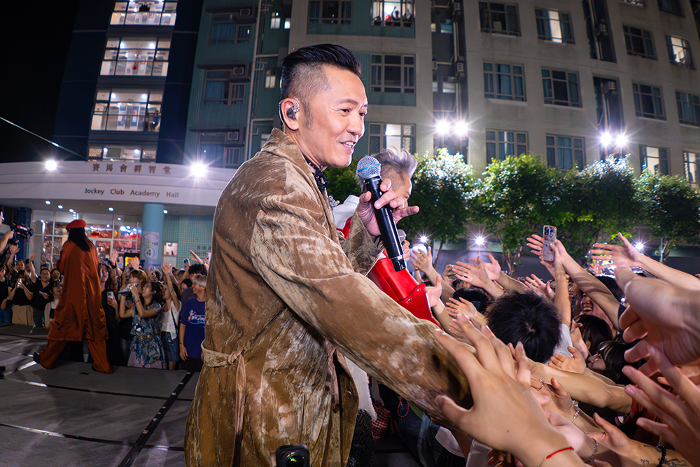 不少同學在宿舍樓房窗邊捧場,揮動手燈又做心心手勢打氣,蔡一智笑說:「佢哋好似喺啟德運動場坐包廂,VIP嚟㗎!」蘇志威說:「佢哋喺VIP區有冷氣好正,但落嚟企台邊睇嘅同學好近距離感受我哋嘅表演,可以握手,互相感受到大家嘅熱情。」表演最後全場大合照,同學仔大叫encore,草蜢預告明年4月紅館演唱會,到時再見。蔡一智希望畢業禮再請他們來慶祝,又說:「下次直情搞個草蜢Scool tour啦!原來咁好玩,可以比佢哋感染到嗰種開心氣氛!」
