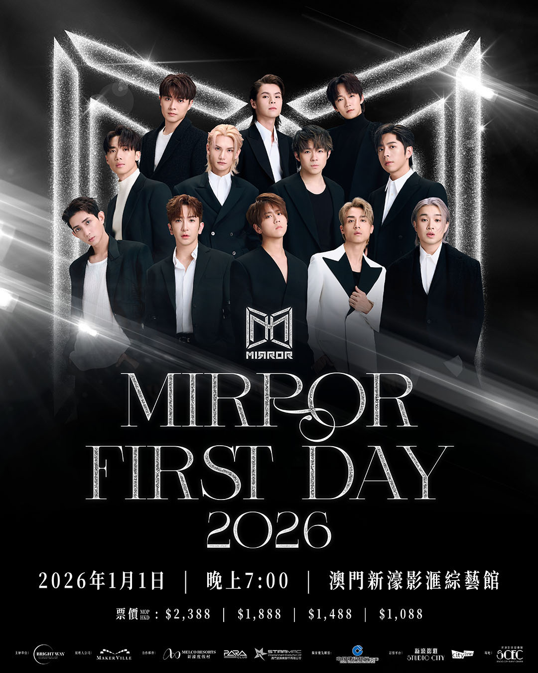 緊接跨年演出,MIRROR 將於2026年1月1日晚上7時,在同一場地舉行《MIRROR First Day 2026》元旦專場。12子將陪鏡粉們度過2026年第一天,攜手展開新一年,共同留下無法復刻的專屬回憶。票價分別為$2,388、$1,888、$1,488及$1,088。