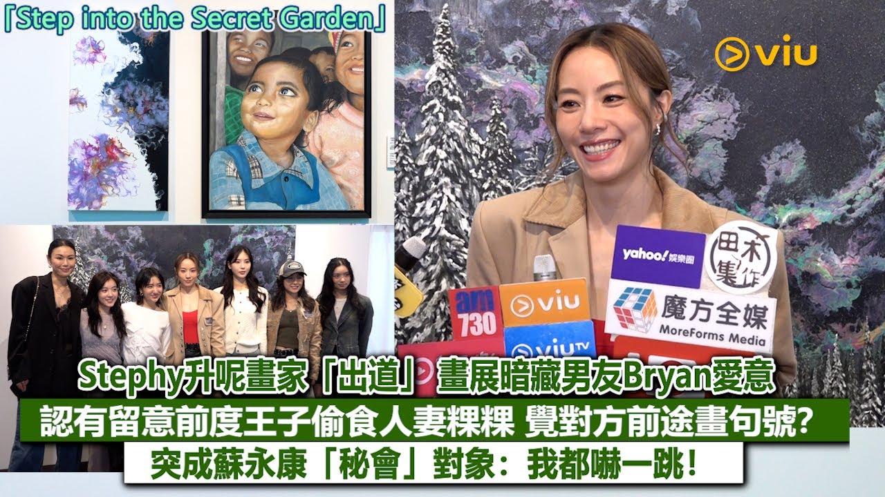 【Viu】Stephy鄧麗欣由演員、歌手升呢以畫家「出道」,今日為首個畫展「Step into the Secret Garden」舉行開幕禮,成就大解鎖!才女開心表示夢想成真,共展出20幅靚畫作,當中以身後巨型油畫最大挑戰,用一個星期完成後條腰痛足兩個禮拜!