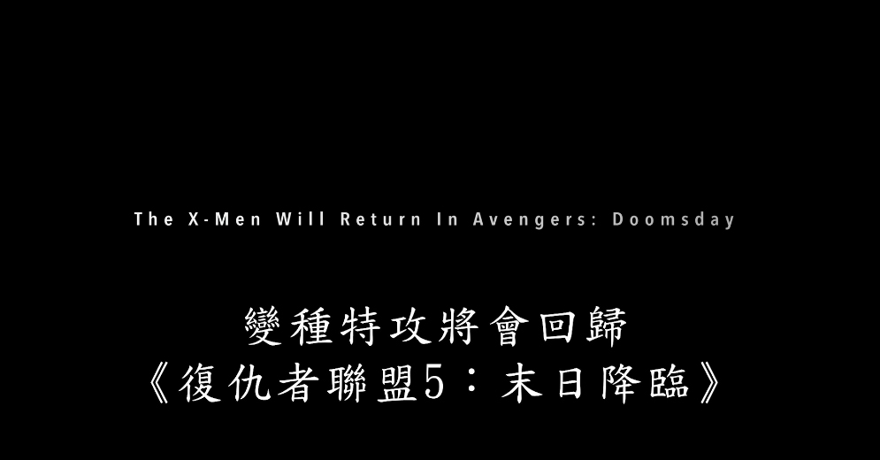 【Now.com】Marvel粉絲注意!繼早前《復仇者聯盟 5》(Avengers: Doomsday)第一、二段預告片先後登場後,Marvel Studios昨日(6日)正式發布以X-Men(變種特攻)為主軸的第三波前導預告片,標誌著變種人的設定將正式加入到漫威電影宇宙(MCU)中!預告中,X教授、磁力王兩位經典角色現身,鐳射眼Cyclops更身穿經典藍黃戰服,除掉護目鏡出場,或會與復仇者們並肩對抗終極反派「末日博士」。