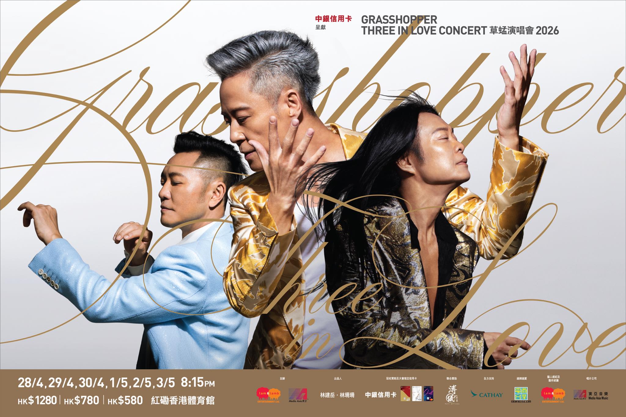 《Grasshopper Three In Love 草蜢演唱會2026》將於4月28日至5月3日在紅磡香港體育館舉行。門票分別為港幣HK$1280、HK$780、HK$580,2月10日公開發售。