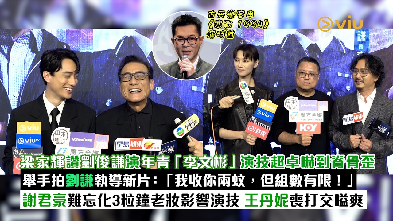 【Viu】劉俊謙、謝君豪、Louise王丹妮、導演梁樂民今日出席《寒戰 1994》電影發佈會,梁家輝以神秘嘉賓身份現身。客串演「李文彬」嘅家輝哥同演自己年輕版嘅劉謙孖住訪問,家輝哥激讚對方比自己更出色,令佢質疑自己喺兩輯《寒戰》嘅演技,嚇到脊骨都歪埋!劉謙聽到前輩咁講,表示壓力山大,驚到有五十肩添!
