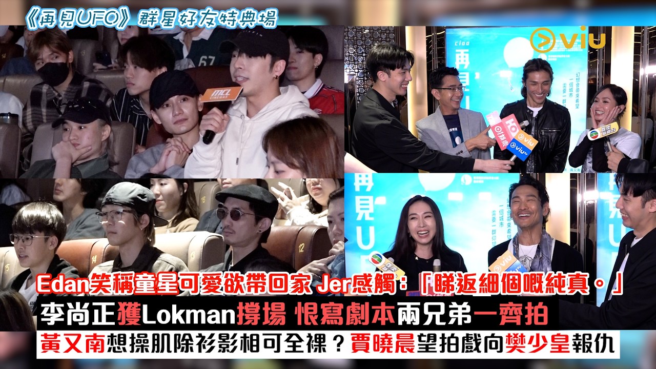 【Viu】《再見UFO》今晚舉行群星好友特典場,除咗一班演員黃又南、Alex杜德偉、JJ賈曉晨、Rachel梁雍婷、朱栢康、李尚正等出席,MIRROR成員Edan、Lokman、Jer、Jeremy、Alton都孖師弟Teller 、Zpot嚟撐場。Edan睇完戲分享感受,幽默指戲中一位童星超可愛,直情可以帶返屋企做寵物嘅級數。而Lokman就感觸話:「過去好美麗,但唔好忘記現在,得閒攞返架UFO出嚟望下,咁就有力量。」Jer亦話:「鍾意ending,再次見返UFO時,睇返細個自己嘅純真,會點面對呢?」