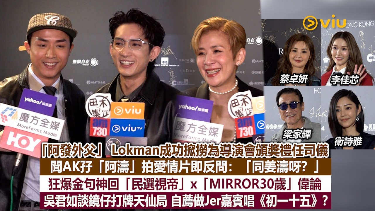【Viu】《2026香港電影導演會周年晚宴暨年度頒獎典禮》今日舉行,MIRROR隊長Lokman同談善言擔任主持,副隊長Anson Kong、Stanley、吳君如、梁家輝、ANSONBEAN等出席,Lokman笑認嚟咗幾年終於搲撈成功,AK就搞笑話想嚟食乳豬!AK透露最近為新電影剪頭髮,仲係孖「阿濤」愛情片,Lokman即爆笑問係咪「姜濤」,仲話期待睇「姜爆」談情,果然係腐眼大開!