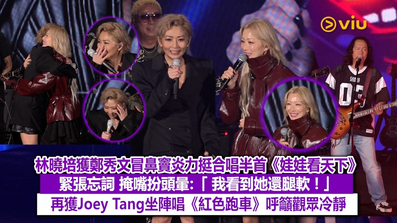 現場實況:林曉培獲鄭秀文冒鼻竇炎力挺合唱半首《娃娃看天下》 緊張忘詞 掩嘴扮頭暈:「我看到她還腿軟!」 再獲Joey Tang坐陣唱《紅色跑車》 呼籲觀眾冷靜|Viu1現場實況