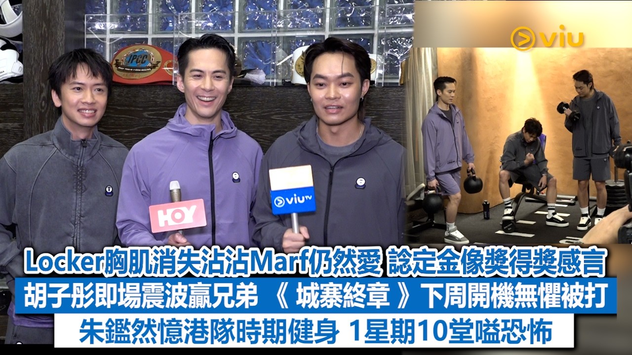 【Viu】Locker林家熙 、胡子彤、朱鑑然今晚到Gym Room拍廣告,呢3兄弟話平時都冇一齊做gym,反而Locker就有孖Marf拍拖健身,仲沾沾話雖然瘦咗冇晒胸肌,但Marf一樣咁愛佢,喂呀小編糖尿病喇!講到本月中嘅金像獎角逐「最佳男配角」,Locker話已準備兩套戰衣希望當晚可以着晒,仲話已諗定得獎感言,希望有得上台。