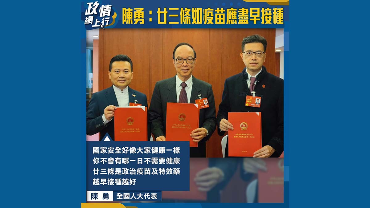 【政情網上行】陳勇:廿三條如疫苗應盡早接種