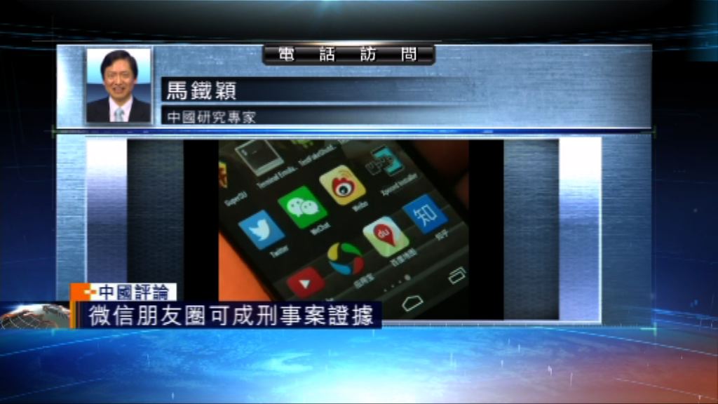 【now新聞台】中國最高人民法院、最高人民檢察院、公安部聯合公布新規定,10月1日起在微博、微信朋友圈等網絡社交平台及手機簡訊、電子郵件上的訊息,當局可以此作為刑事案證據,需要時可經公安機關或檢察長批准凍結有關數據。