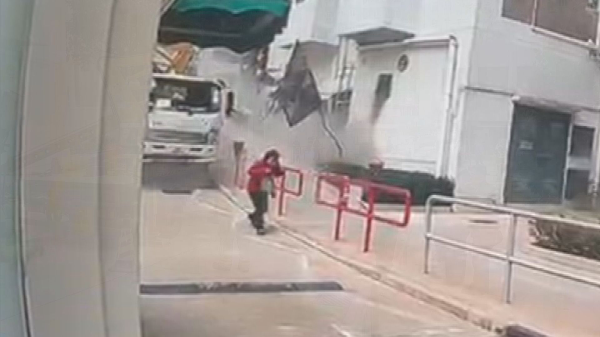 網上片段見到電錶房爆炸時火球冒出,鐵門被炸開,女途人即時走避。