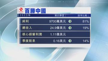 【Now新聞台】在內地經營肯德基及必勝客等餐廳的百勝中國上季多賺約80%,除派息金額增加,集團亦會加大今年回購力度。