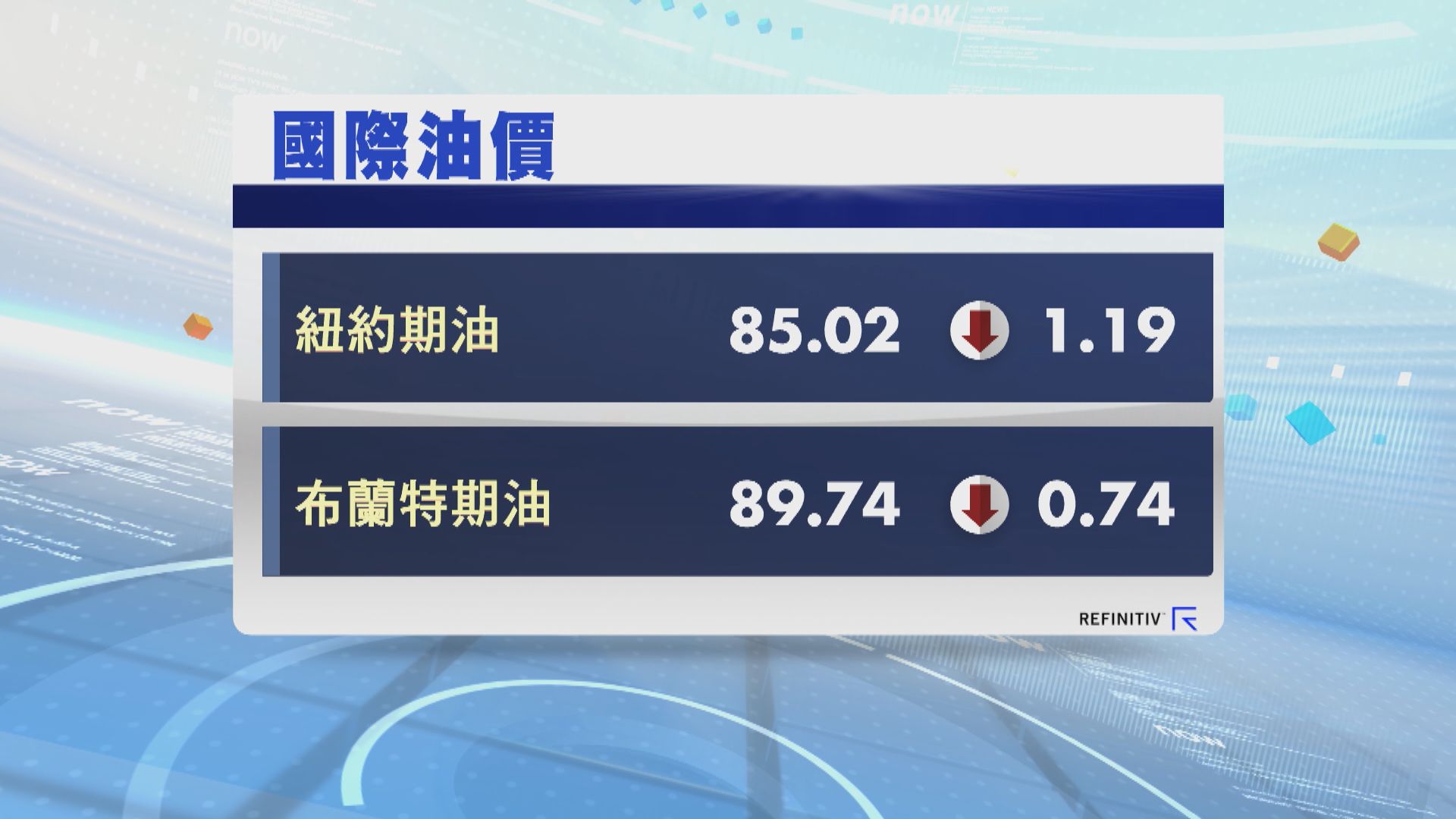 油價下跌 OPEC對今年需求保持樂觀 油價下跌 OPEC對今年需求保持樂觀 2024年4月12日 08:07 【Now新聞台】國際油價下跌。 紐約5月期油,收市跌1.19美元,報每桶85.02美元,跌逾百分之1;倫敦布蘭特6月期油,收市跌74美仙,報每桶89.74美元。 市場預期美國減息步伐放緩抑制石油需求,令油價受壓,不過石油輸出國組織發表的每月報告,仍維持今年全球石油需求,會有較高增長的預測。