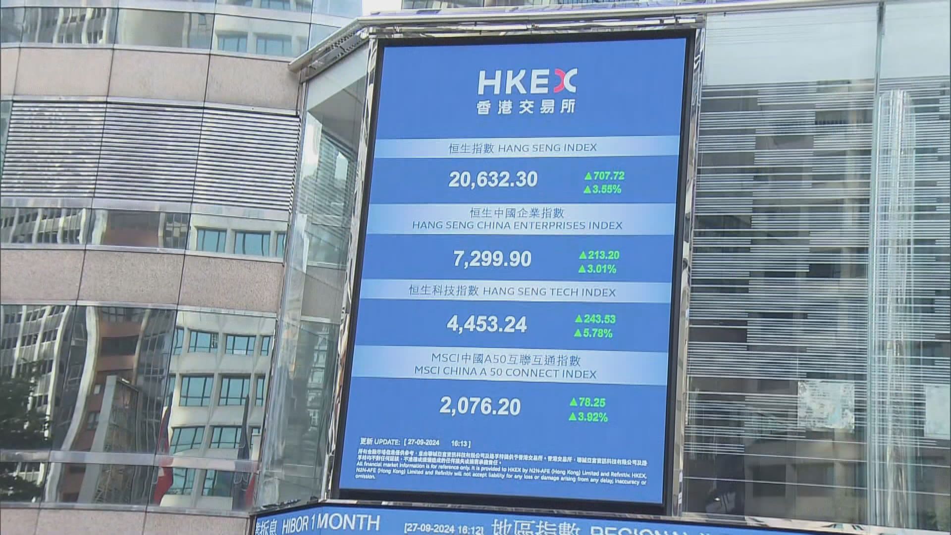 【Now新聞台】中央要實施有力度減息和救樓市,恒指再大升逾700點,企穩在兩萬點,成交逾4400億創歷史新高,一周恒指累計升逾2300點。