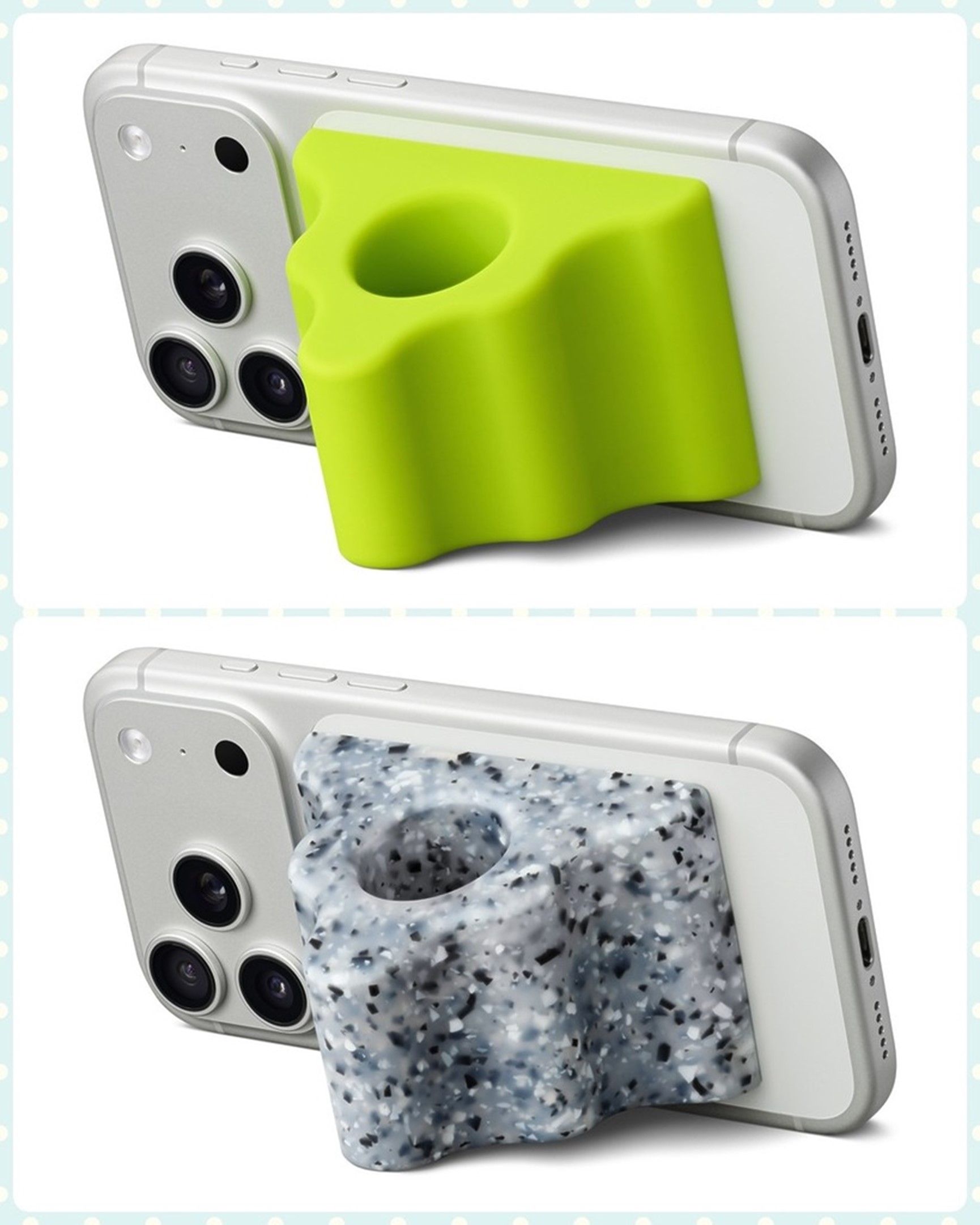 ▲Hikawa Phone Grip & Stand 限量版有仿花崗岩石色及鮮亮青檸色。