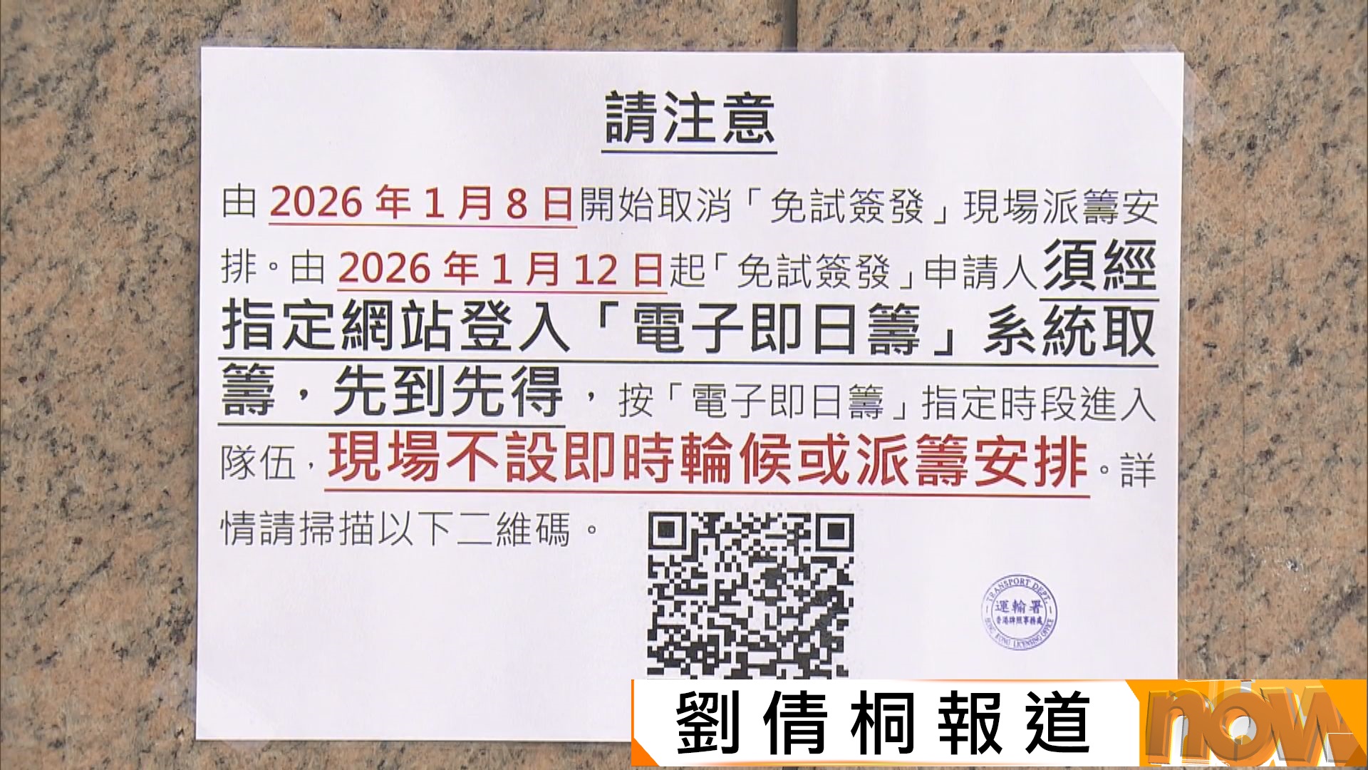 【Now新聞台】運輸署即日起,取消免試簽發本地駕駛執照現場派籌安排,下周一起改為網上系統取籌,有市民早上來到才知道新安排。運輸署署長李頌恩指,電子即日籌要以申請人資料登記,防止轉售籌號。