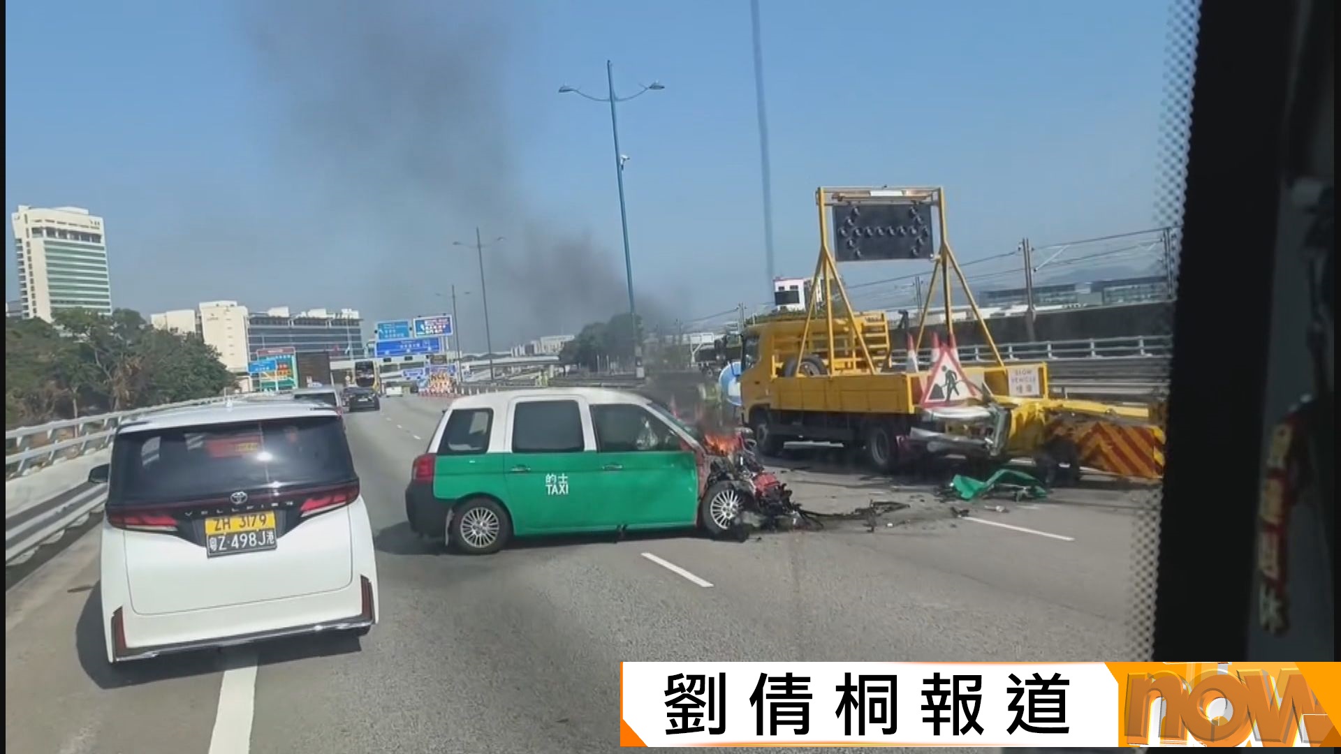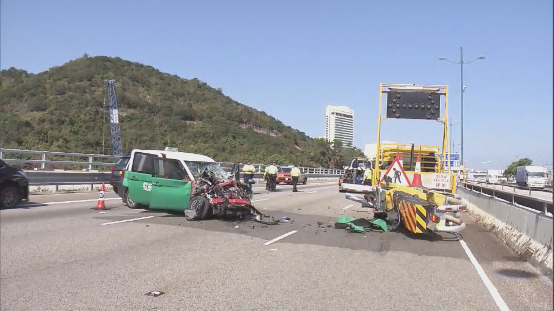 【Now新聞台】機場有的士失事撞向箭咀工程車,的士乘客拋出車外送院不治,的士司機亦受傷。