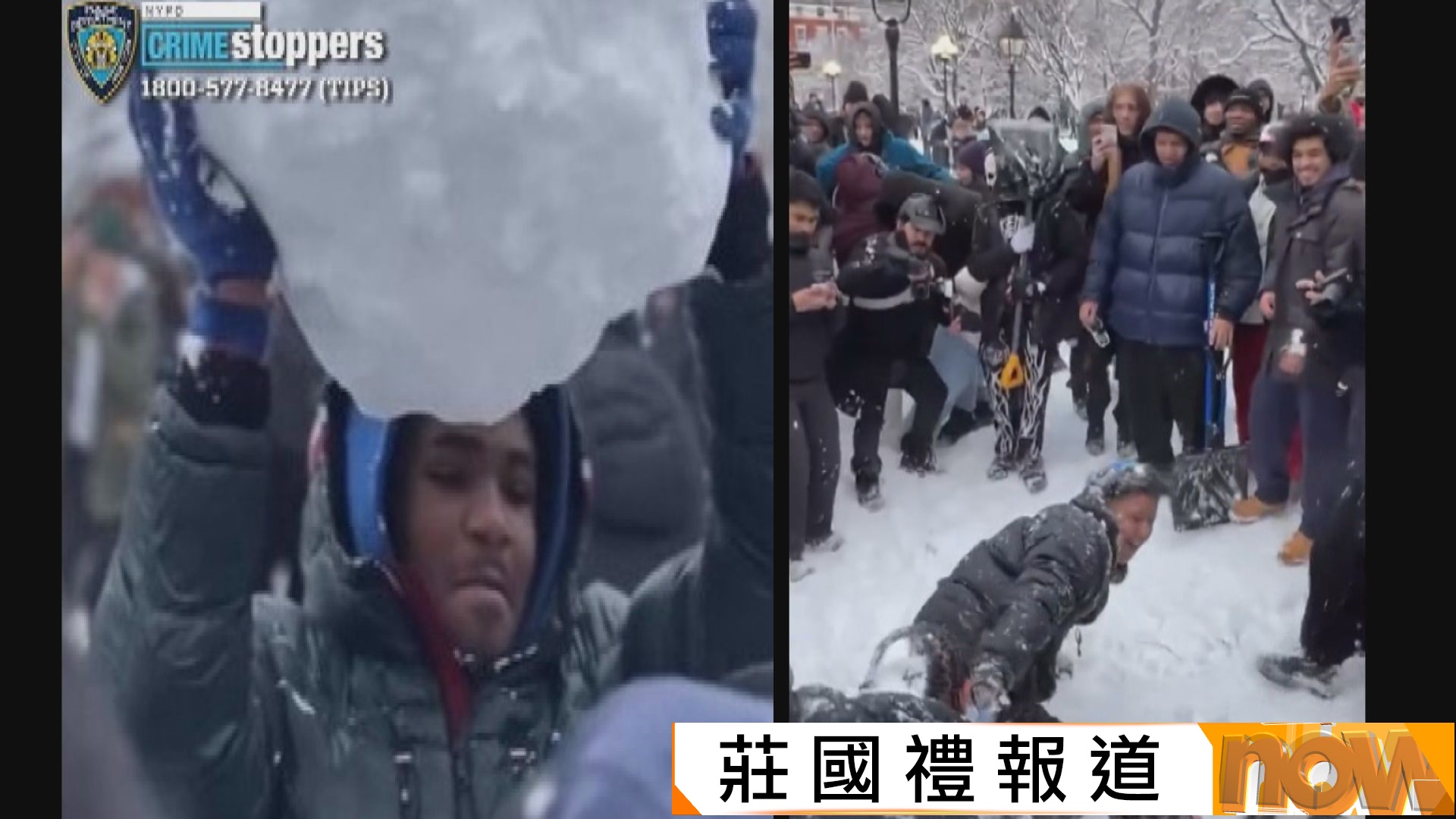 【Now新聞台】美國東北部暴風雪,紐約有人向警察擲雪球,令兩名警員頭頸受傷,追緝至少四人。紐約市長馬姆達尼為事件降溫,稱只是民眾普通擲雪球,無計劃禁止這項活動。