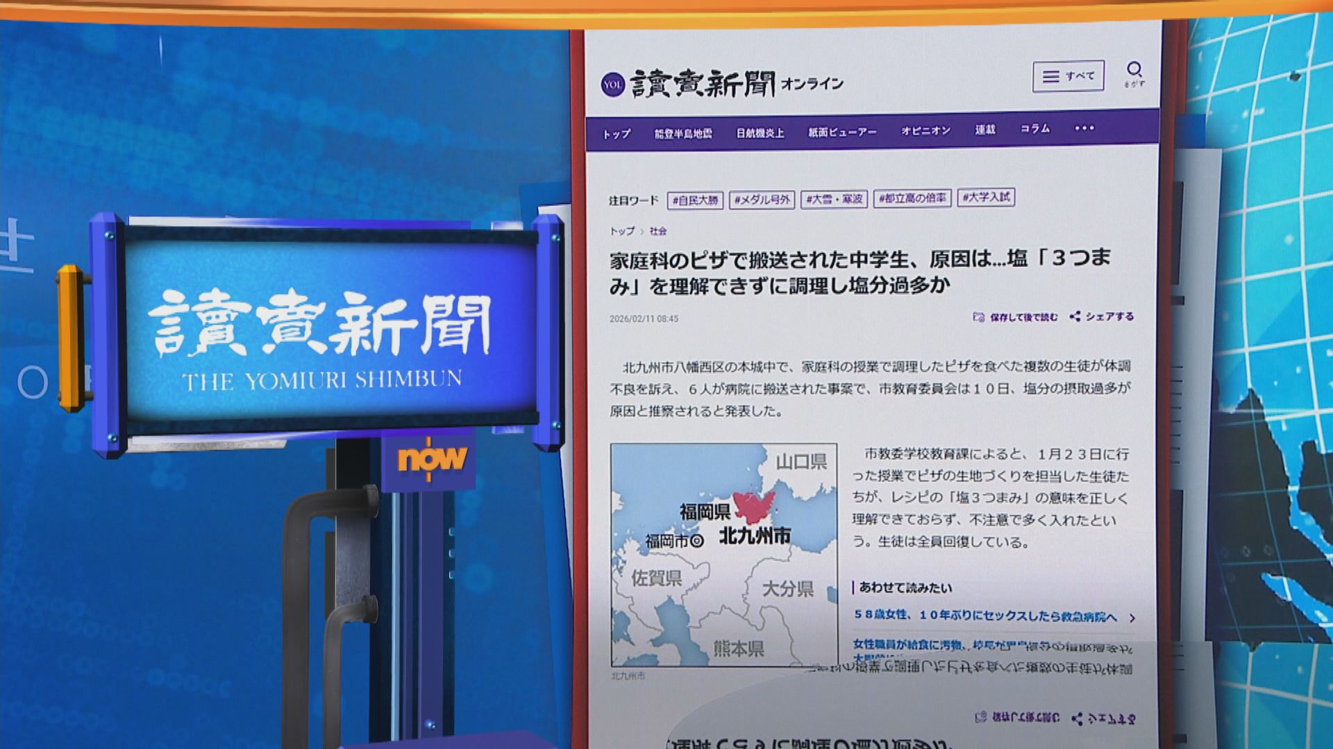 【Now新聞台】日本上月有中學生在家政堂自製薄餅食用後,有數人不適要送院治理,當時有學生反映薄餅太鹹,估計落了太多鹽,北九州巿政府最新公布事件的調查結果。