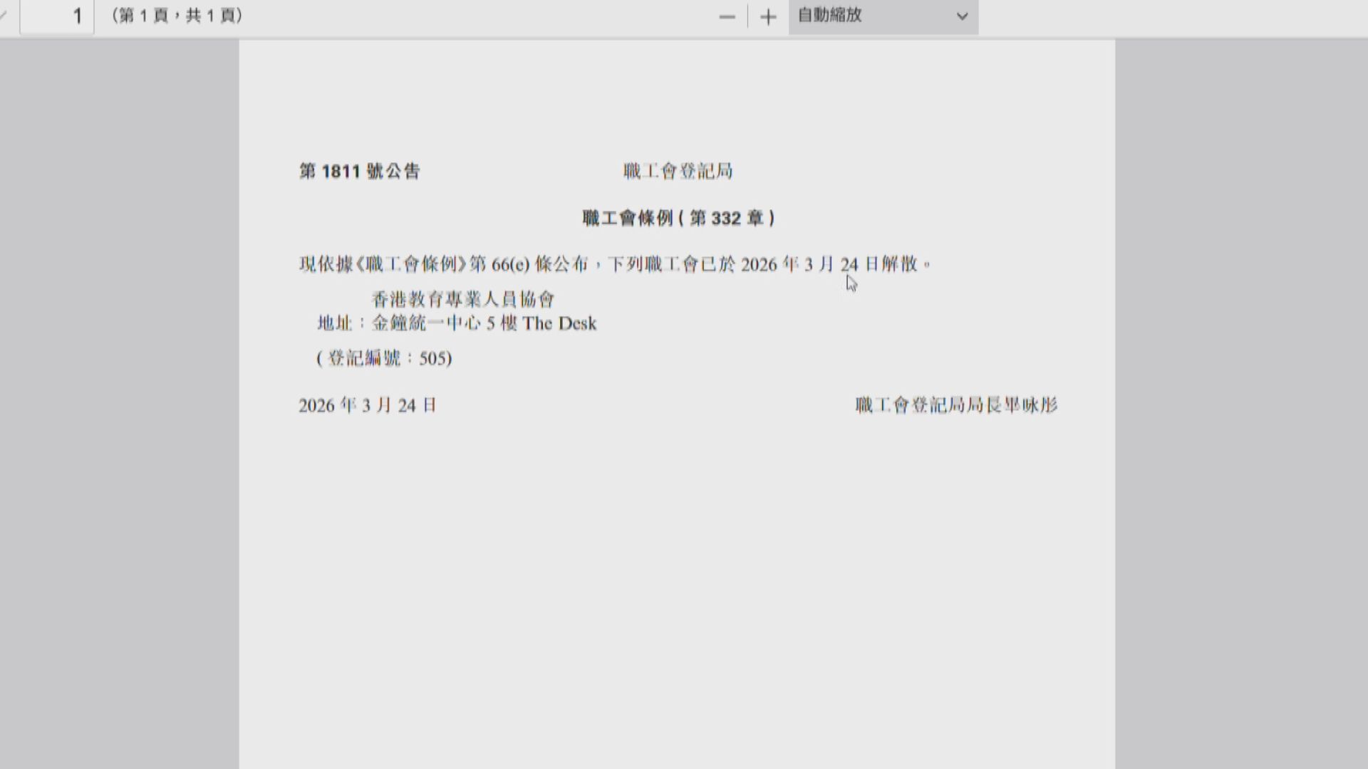 【Now新聞台】政府刊憲公布教協已在周一解散。