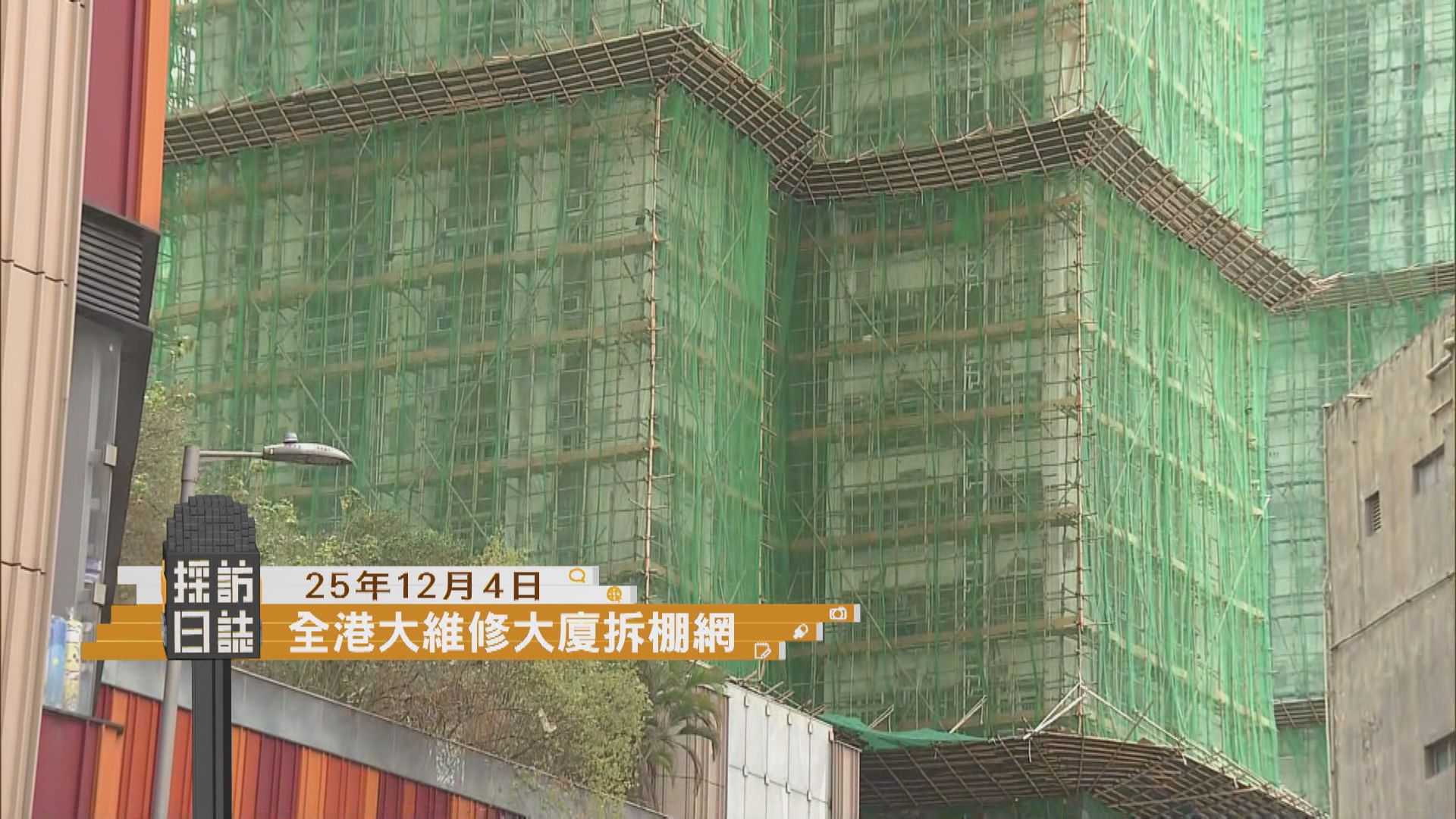 【Now新聞台】政府要求全港200多幢正進行大維修的大廈,周六前拆除棚網。建造業界指,目前人手足以完成任務,但可能影響部分地盤工程進度。