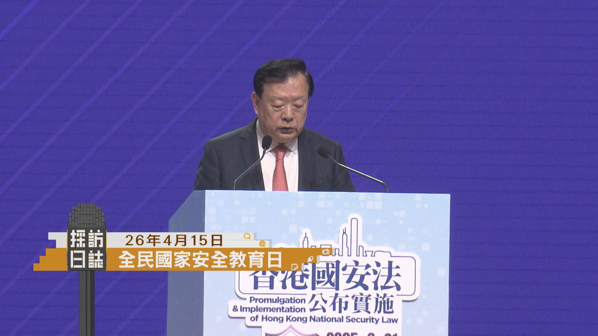 【Now新聞台】港澳辦主任夏寶龍在全民國家安全教育日,以視頻方式發表主旨致辭,相信特區政府會履行當家人職責,編制實施首個五年規劃應具科學和前瞻性,希望工商界和企業家推動北部都會區等建設等方面走在前面,勇於擔當社會責任。