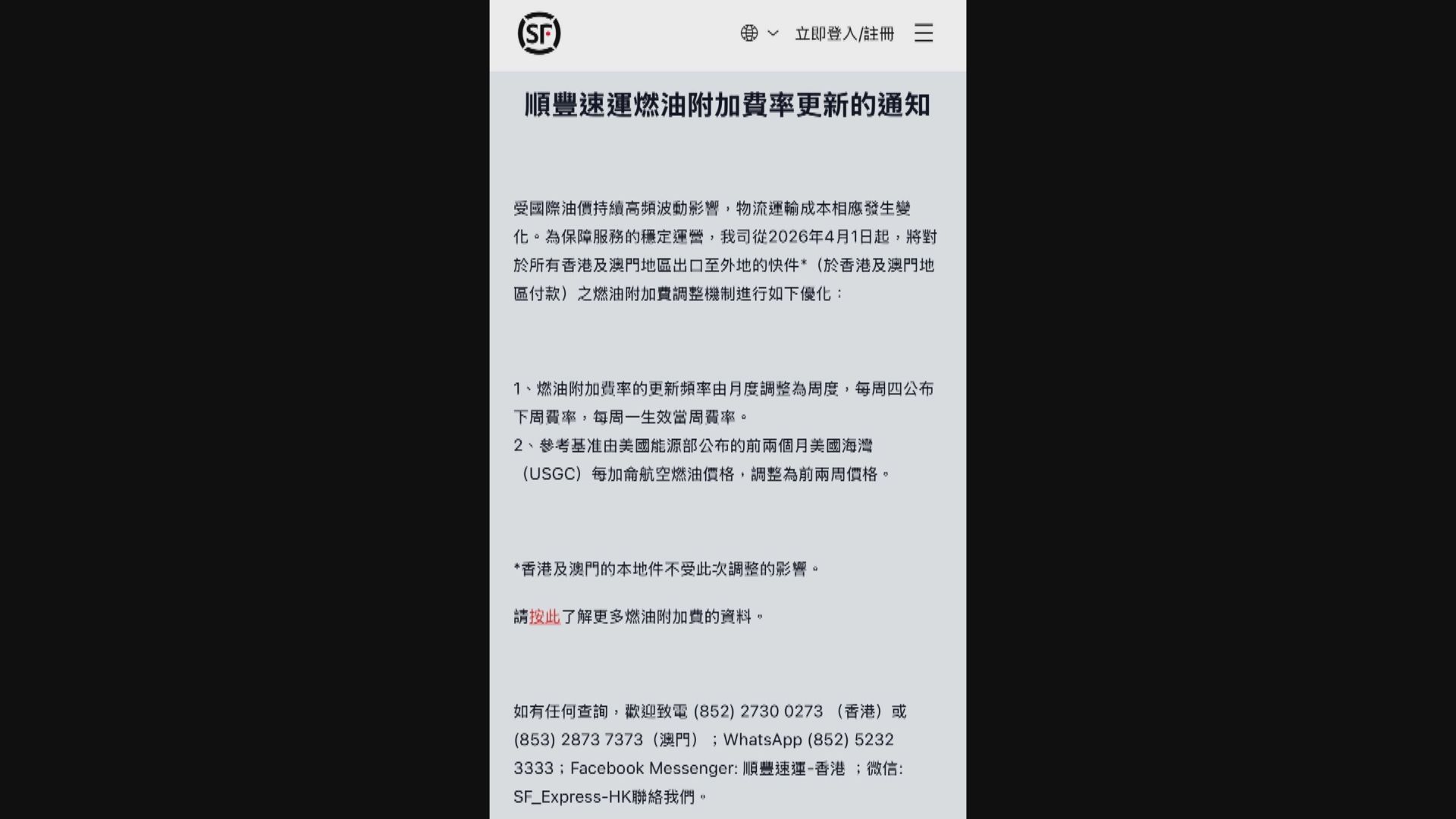 【Now新聞台】順豐速運下周三起,調整香港及澳門出口至外地的快件燃油附加費。
