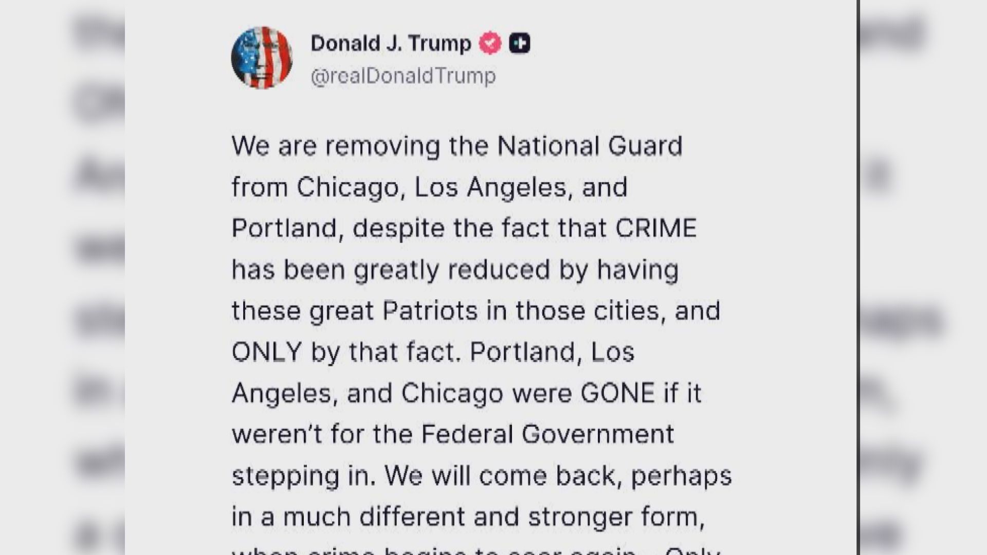 【Now新聞台】美國總統特朗普宣布,撤走部署在芝加哥洛杉磯和波特蘭的國民警衛隊。