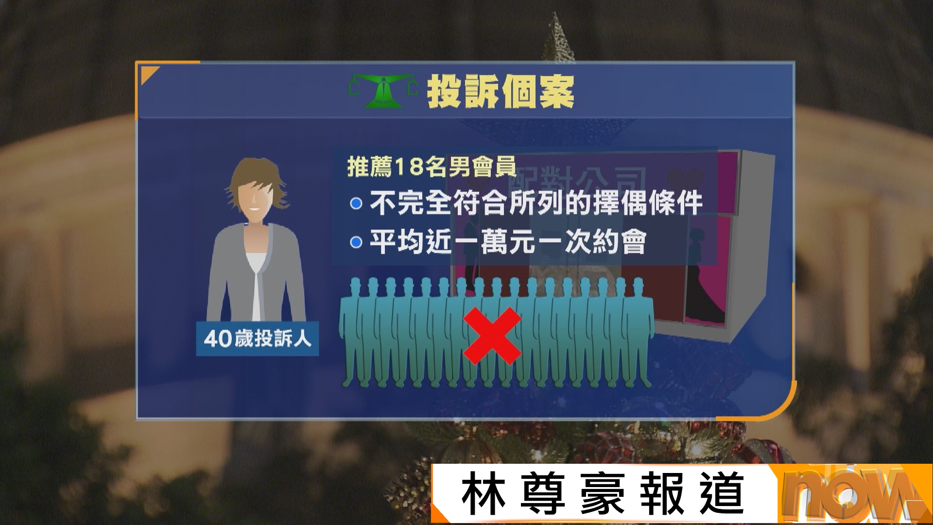 【Now新聞台】消委會今年首11個月接獲88宗有關交友配對服務的投訴是歷年最多,投訴包括推薦對象不合要求等。