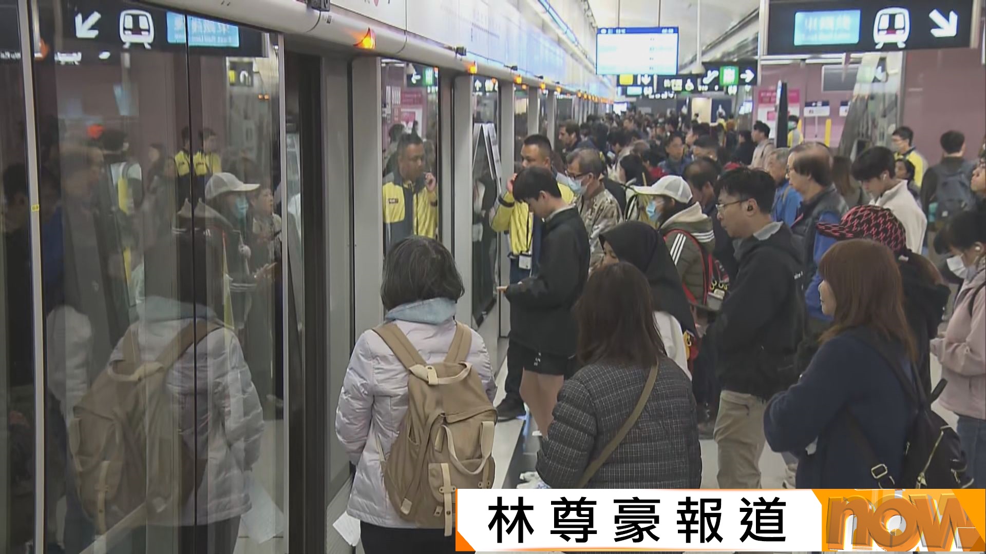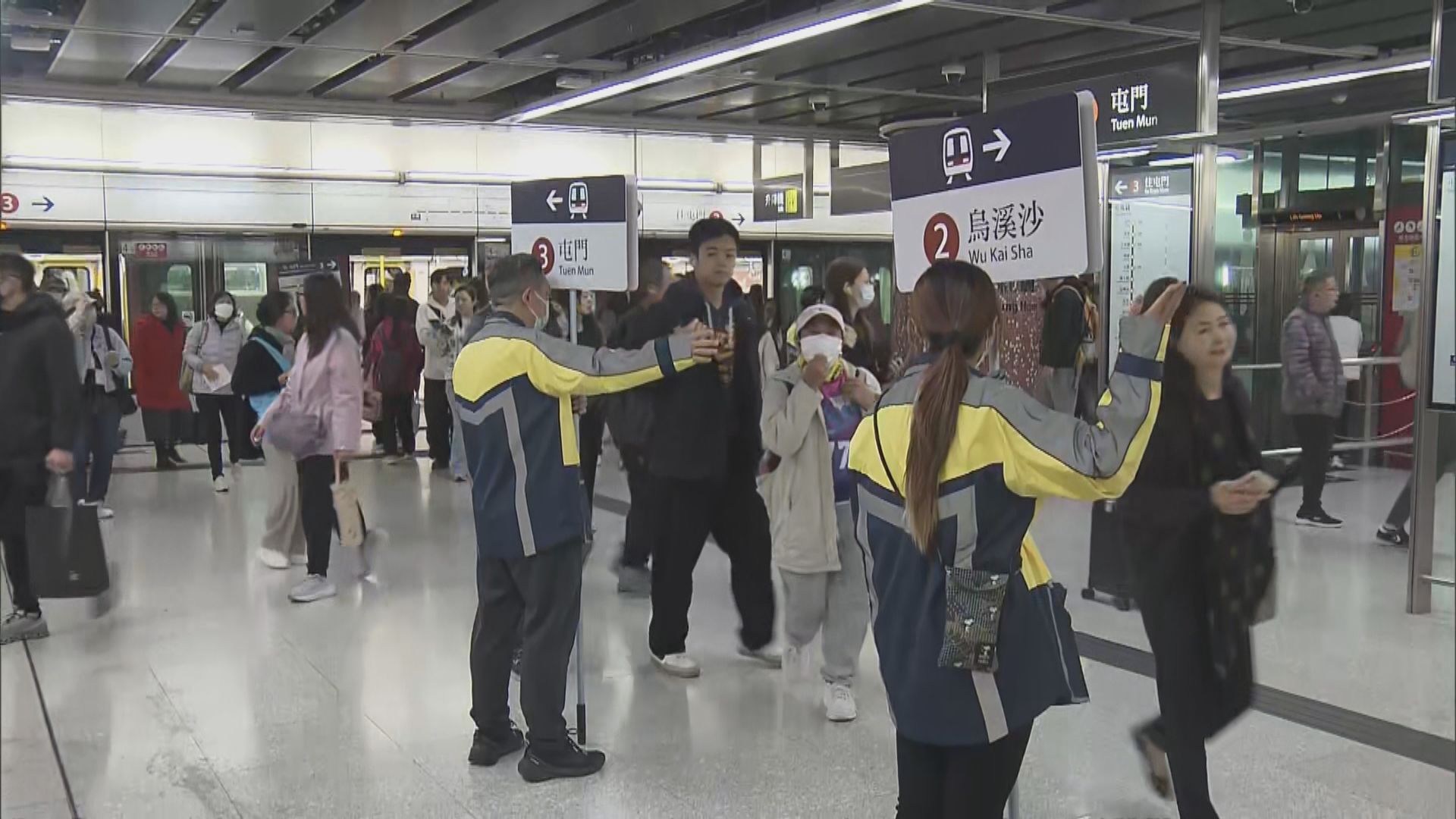 【Now新聞台】為配合紅磡站至尖東站的路軌改道工程,屯馬綫實施分段行車,乘客途經紅磡站須要到對面月台轉車繼續行程。