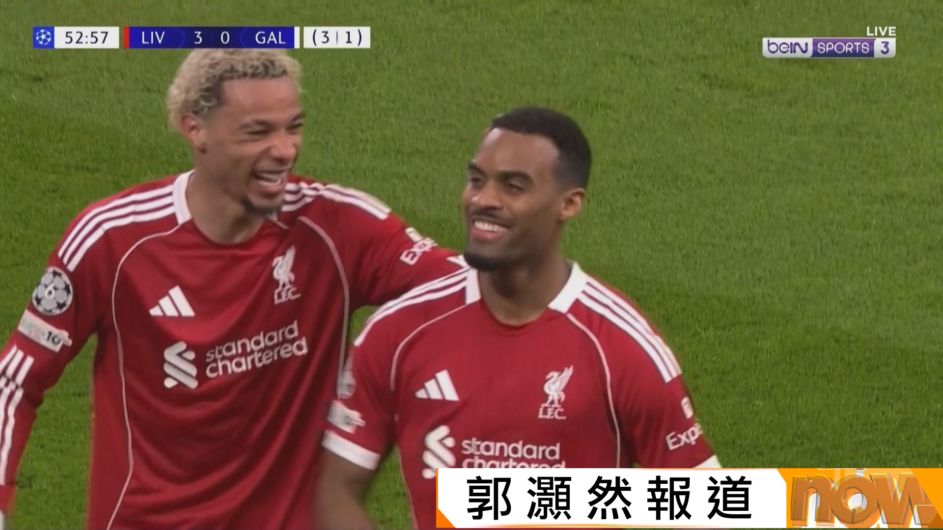 【Now新聞台】歐聯十六強次回合,利物浦主場4比0大勝加拉塔沙雷,兩回合反勝4比1晉級。