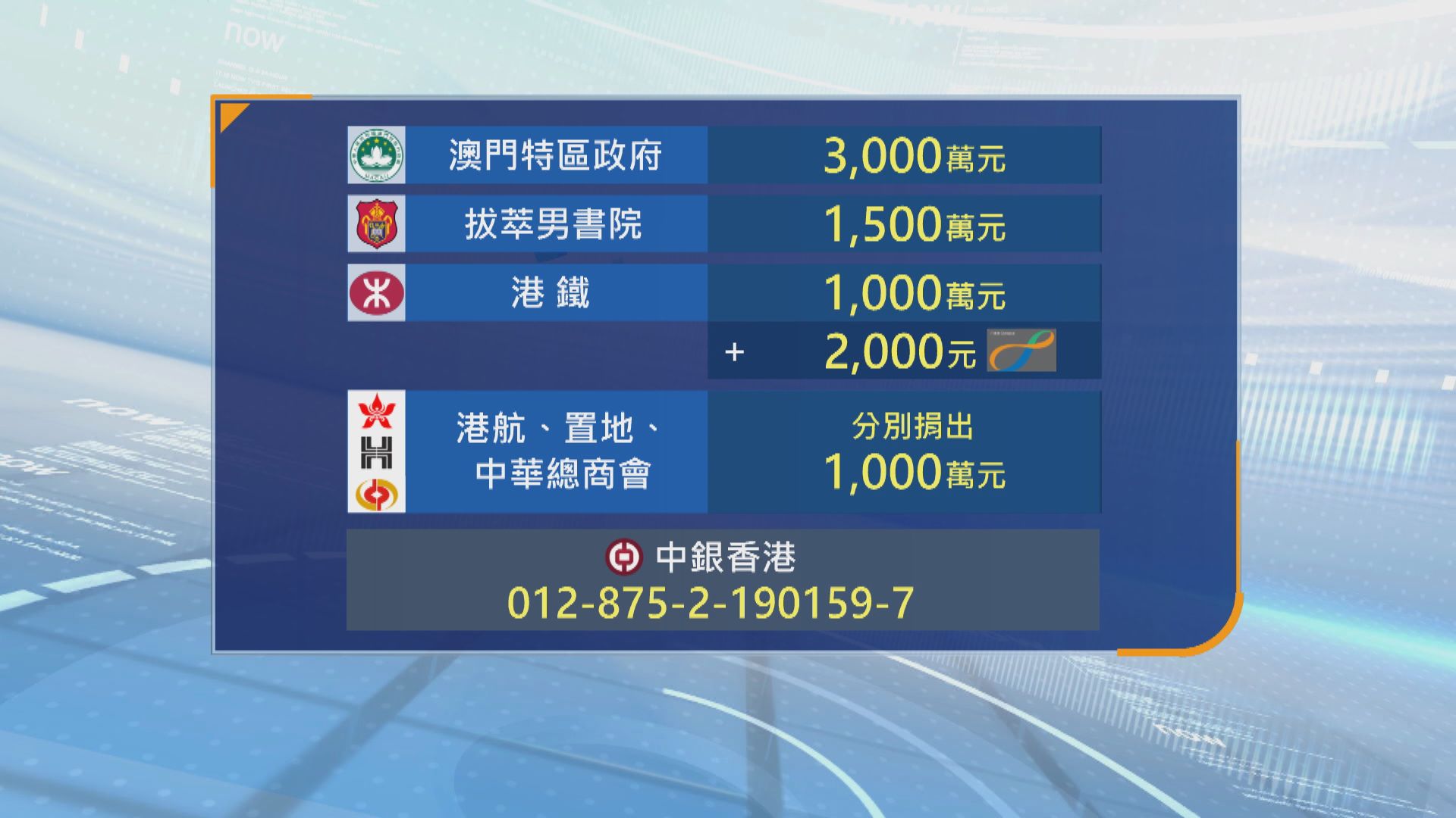 【Now新聞台】澳門特區政府及多間企業、商會繼續捐款支援救災。