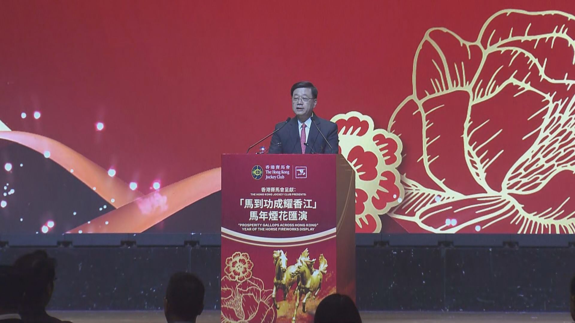 【Now新聞台】行政長官李家超出席煙花匯演典禮致詞時稱,煙花寓意馬年旗開得勝,他祝願香港繼續繁榮穩定。