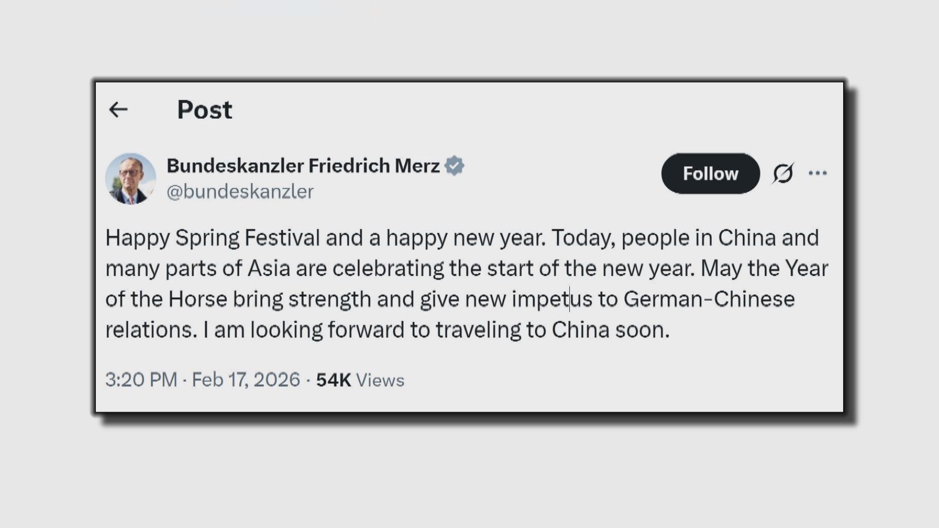 【Now新聞台】法國總統馬克龍和德國總理默茨在社交網站向慶祝農曆新年的公眾拜年。