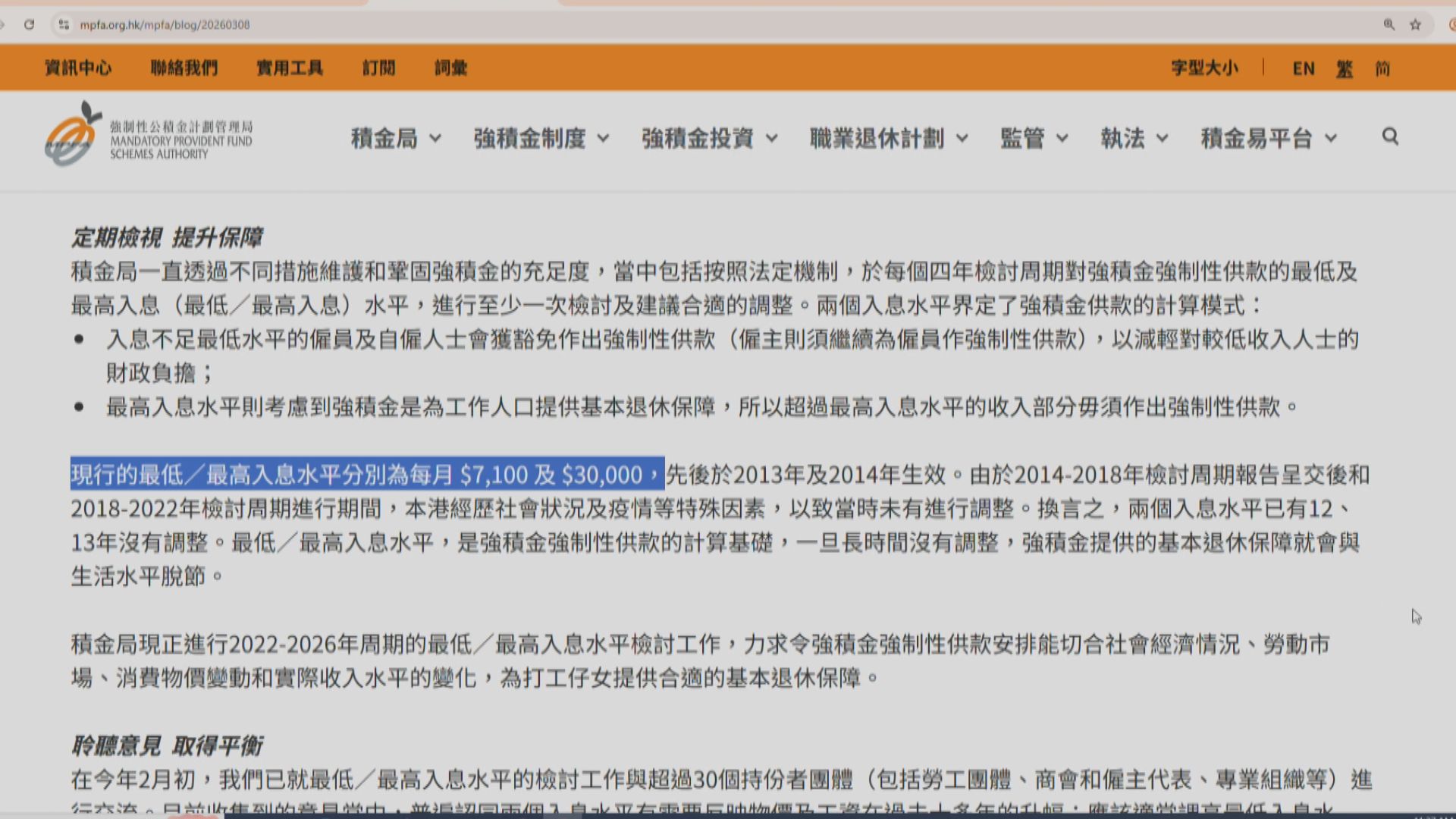 【Now新聞台】積金局正檢討2022至2026年周期的最低及最高入息水平,目標今年年中向政府提交報告及建議。