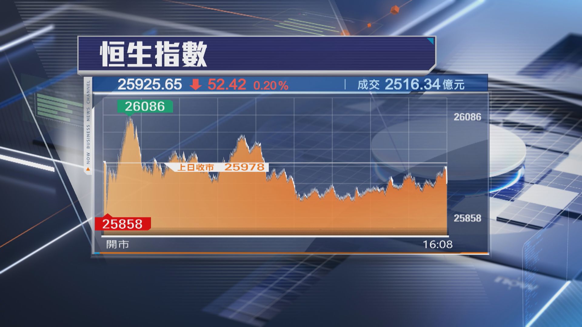 【Now新聞台】中東局勢未明,本港股市缺乏方向,恒生指數反覆向下,續受制於26000關。