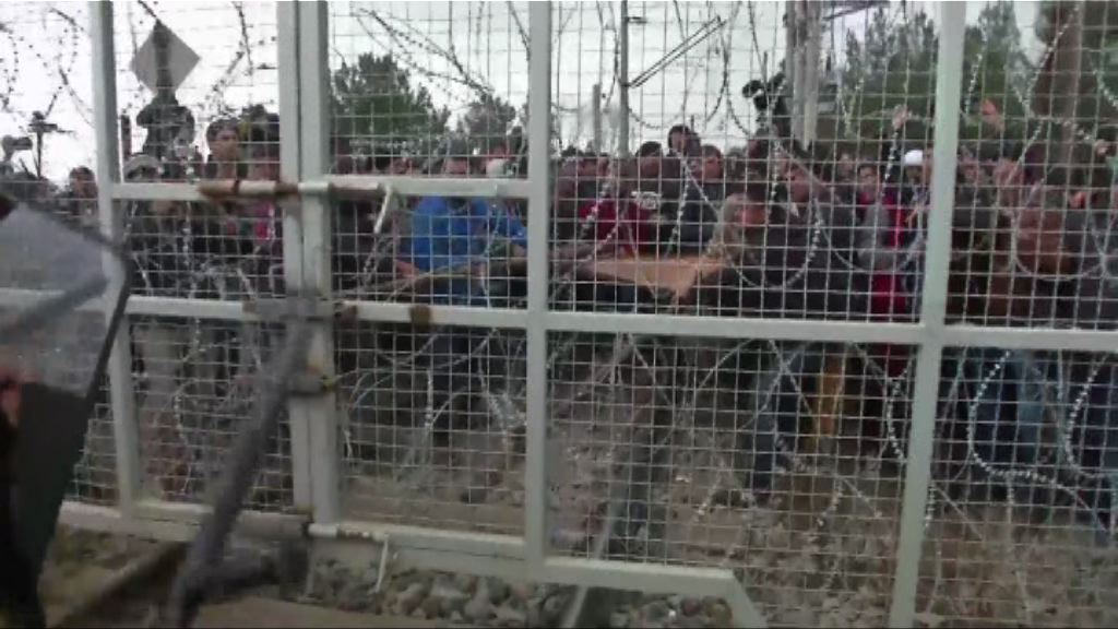 幾百名難民不滿在希臘北部接壤馬其頓的邊境小鎮伊多梅尼滯留多天,他們聚集鼓譟,要求當局開放邊境,大批難民與馬其頓警方對峙,他們嘗試用硬物強行將分隔兩地的鐵閘撞開,又不斷拉扯大閘上的鐵絲網,想盡辦法把它破壞。