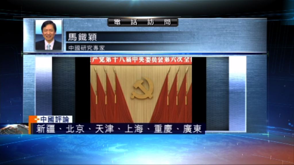 中國研究專家馬鐵穎指,委員將由傳統、重要的六大省市第一把手「入局」,即是新疆、北京、天津、上海、重慶和廣東省的省或市委書記會成為政治局委員。他指,前西藏黨委書記陳全國已接替張春賢任新疆黨委書記,預視陳全國已「跑出」,將成為來屆政治局其中一員。